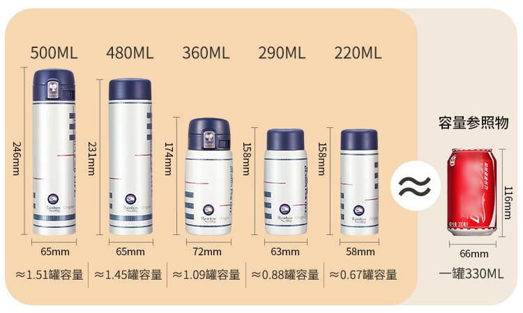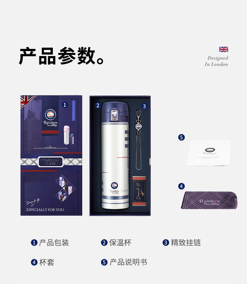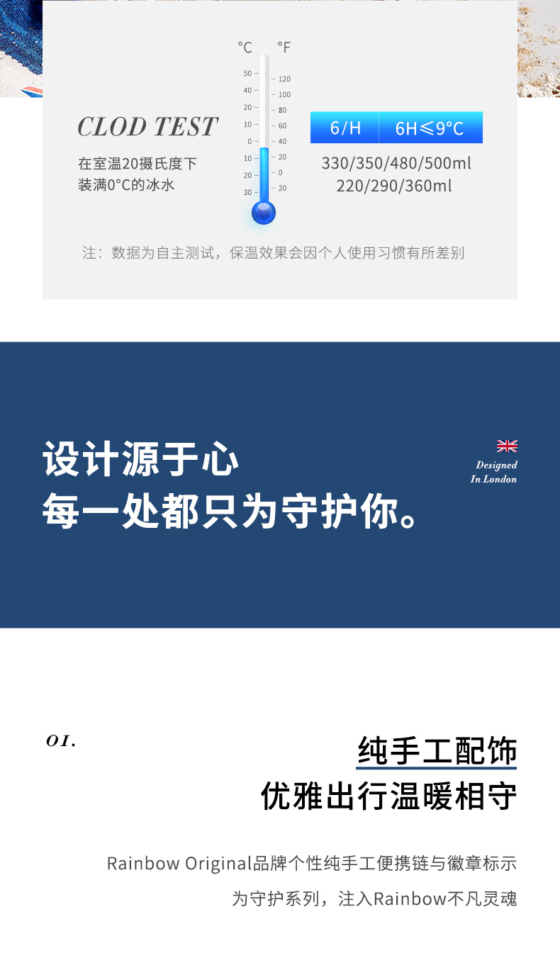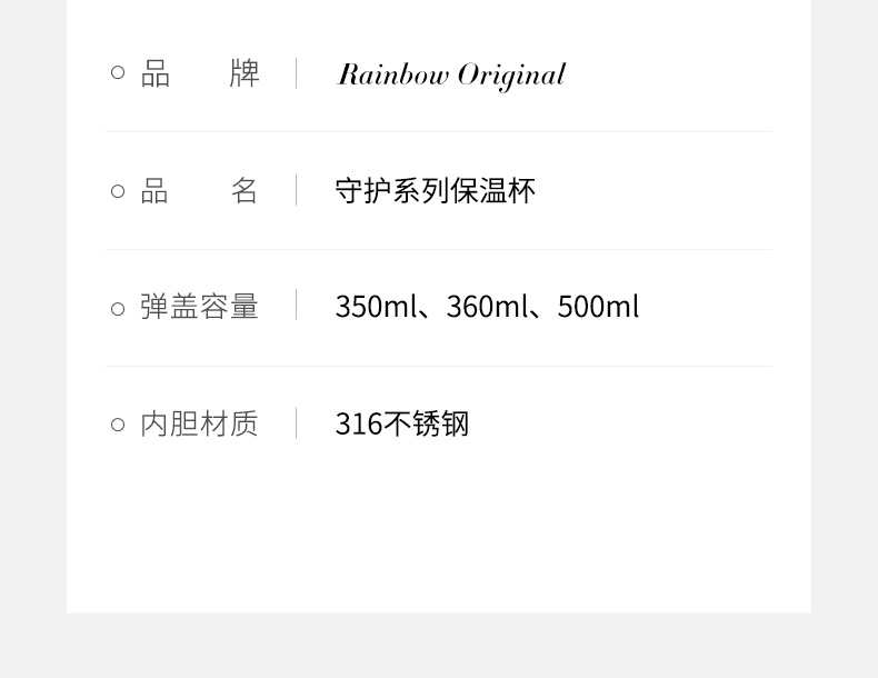 瑞堡奥路Rainbow Origina堡守护保温杯男女士高颜值大容量316不锈钢高档水杯礼盒
