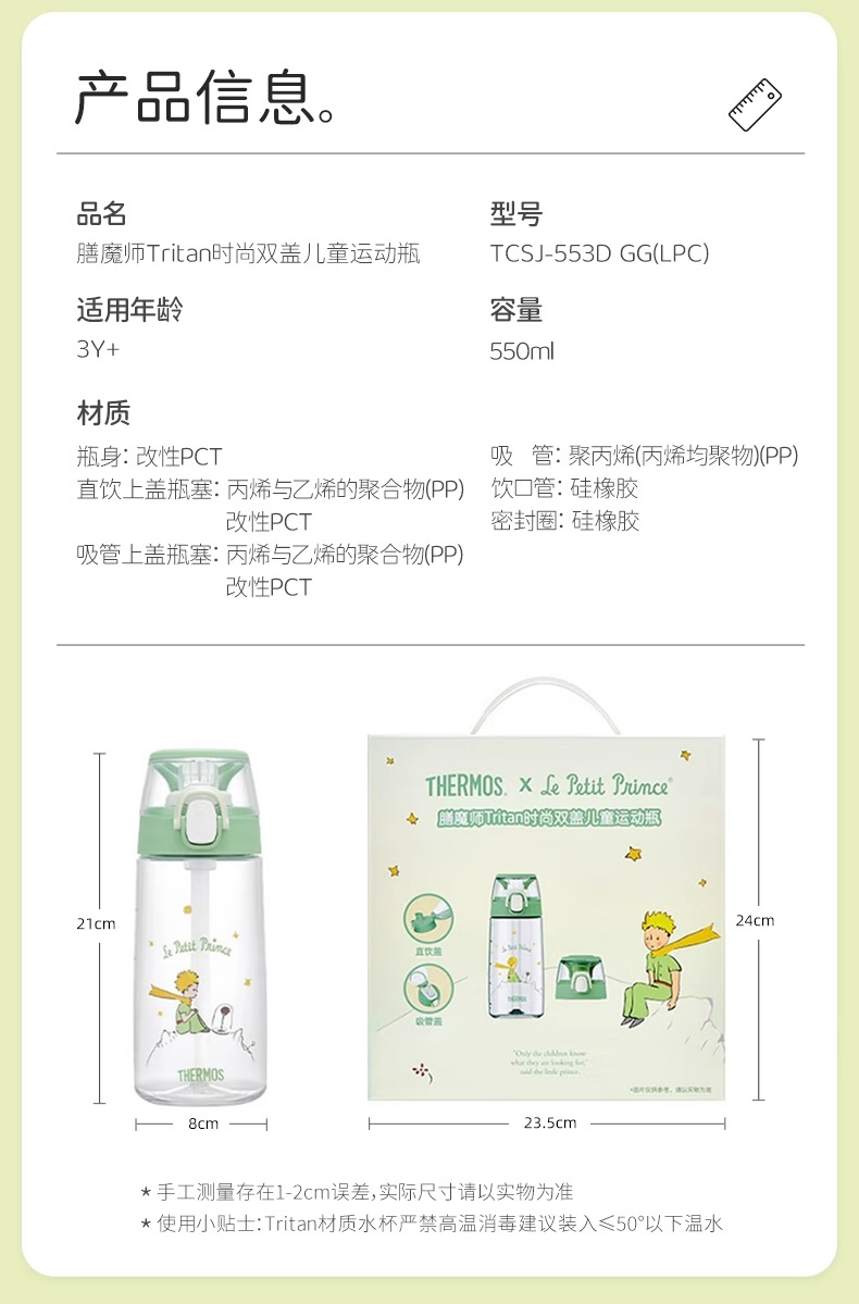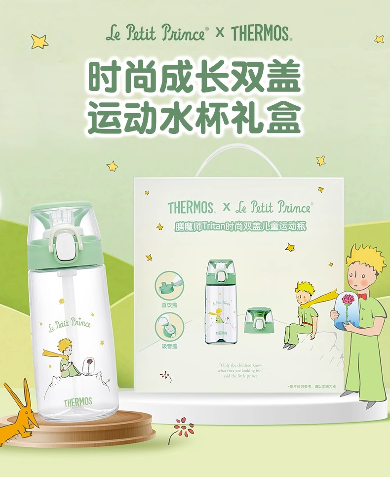 膳魔师x小王子Tritan吸管杯时尚成长双盖运动水杯礼盒550ml