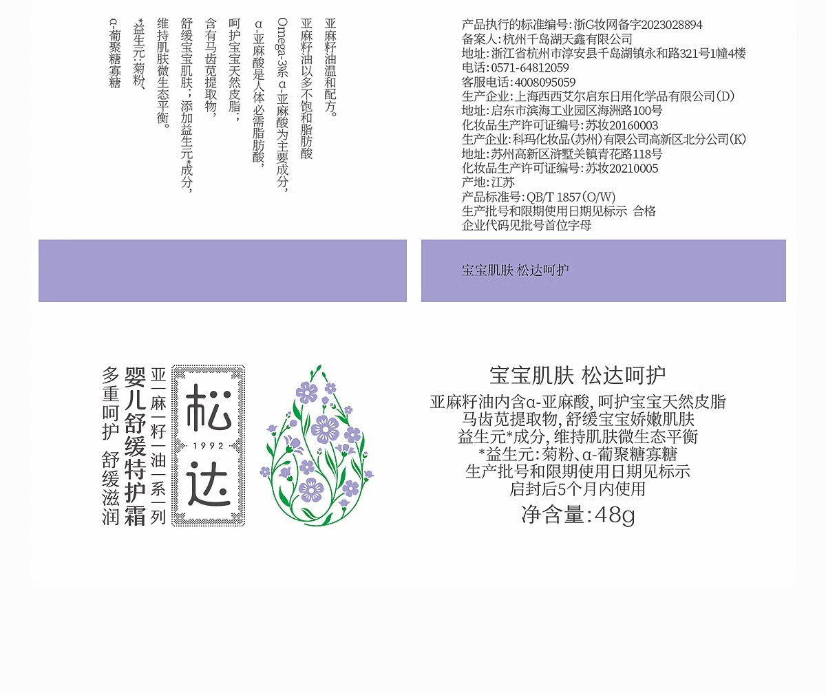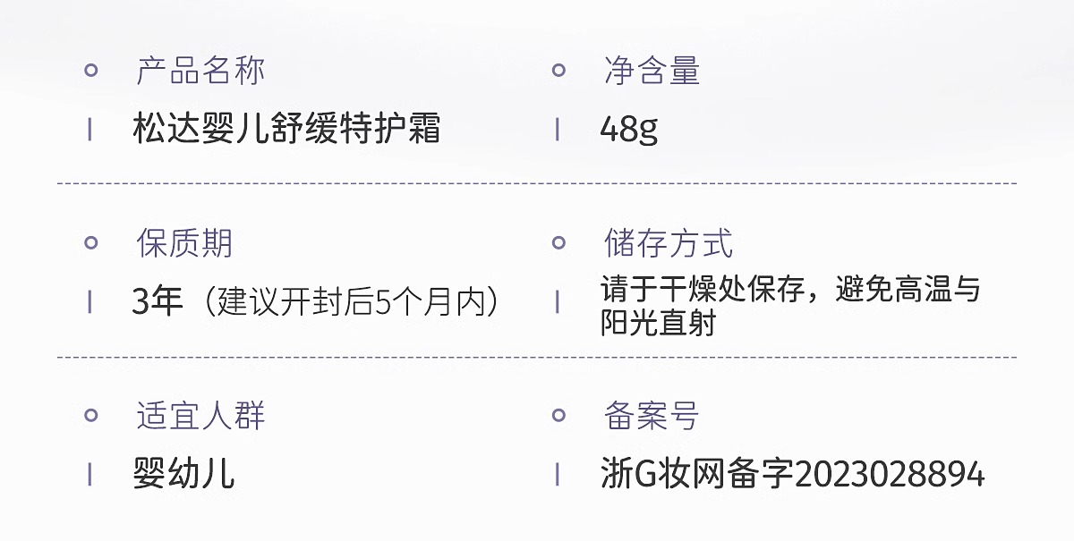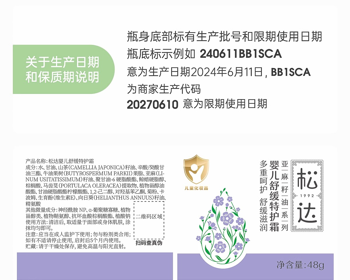 松达婴幼儿舒缓特护霜宝宝补水面霜48g