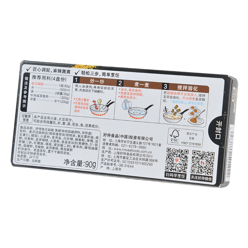 好侍 咖王咖喱 激辣(块状咖喱调料、非即食) 90g/盒