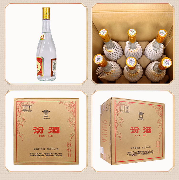 汾酒 黄盖玻汾 53度 475ml*6瓶装