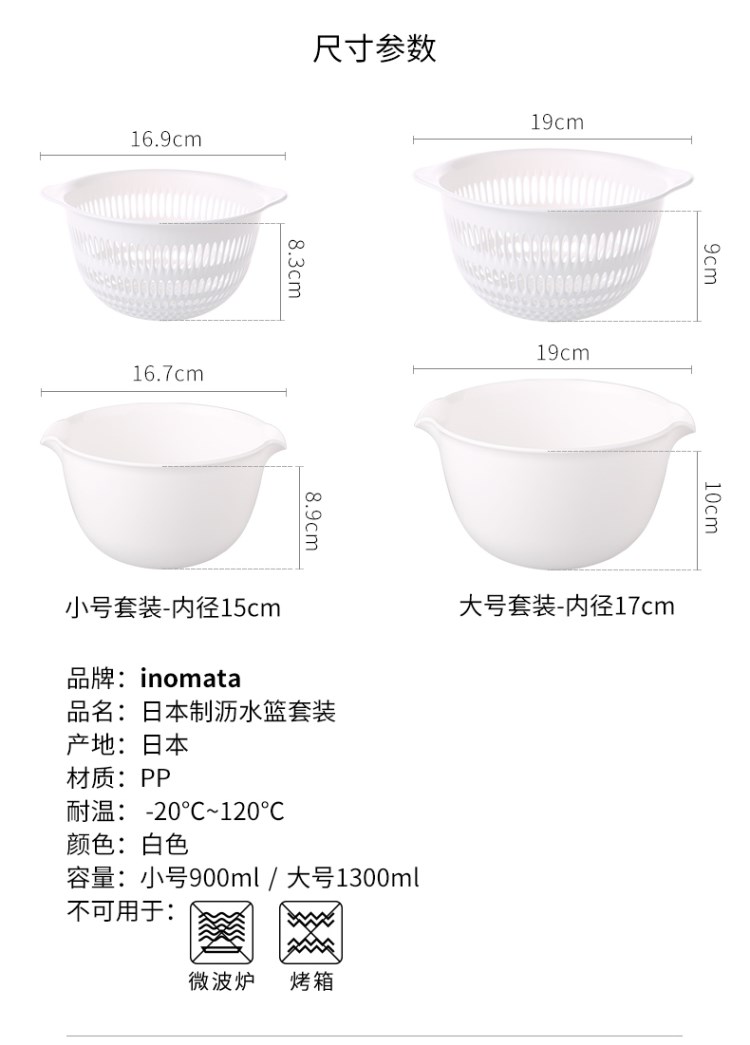 日本进口inomata沥水篮子家用水果蔬菜沥水筛洗菜淘米漏盆