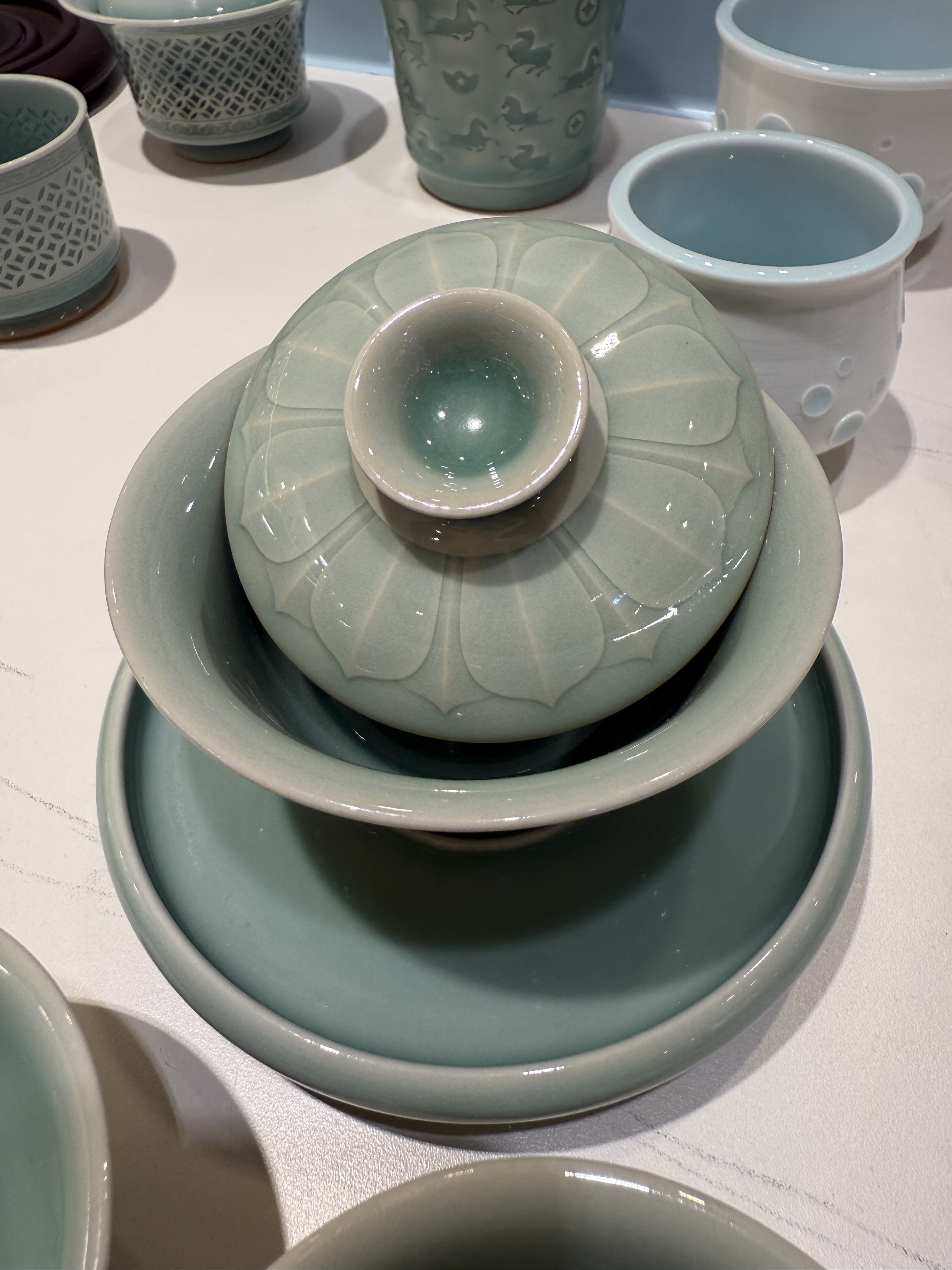 本土斋青瓷莲瓣茶具套装1壶2杯