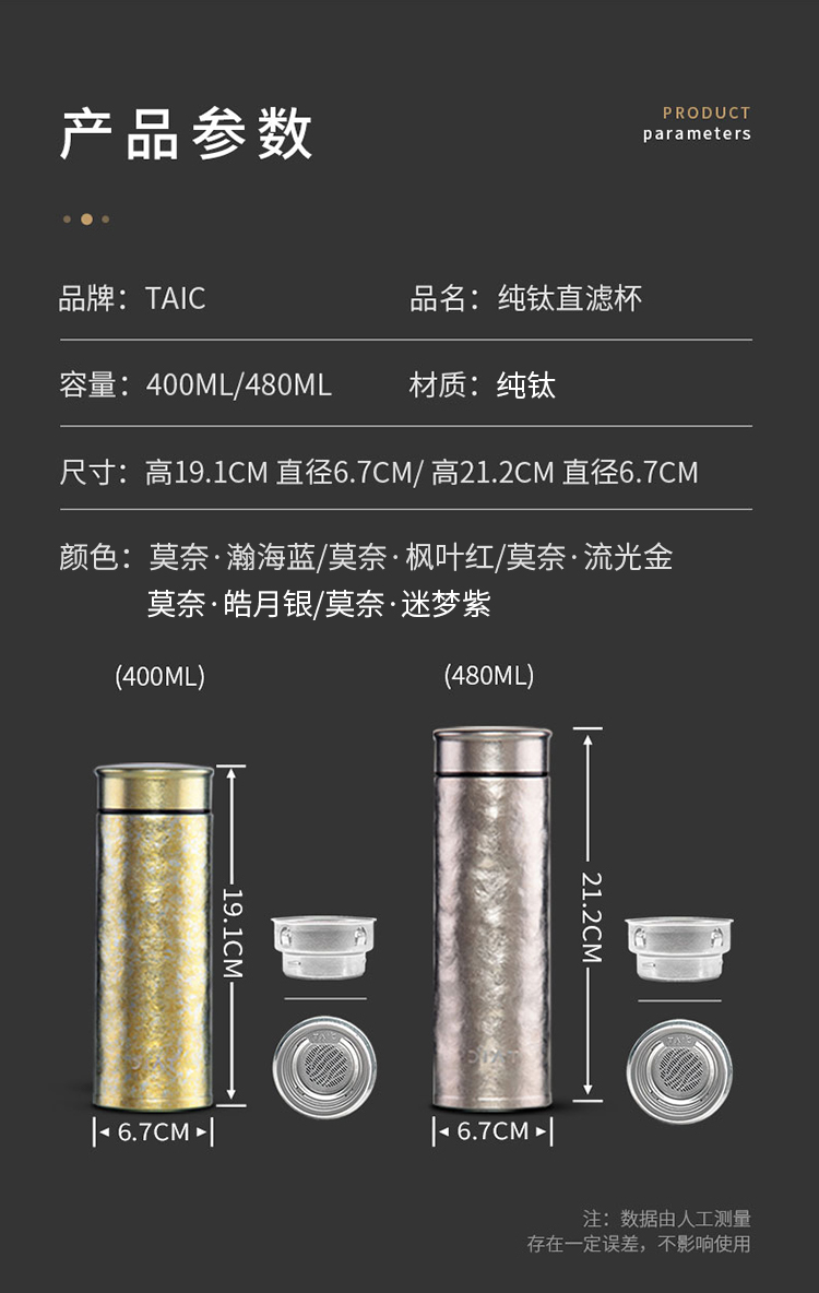 【样品特惠6折,仅1件,无货退款】TAIC太可纯钛大容量高档带茶漏直滤杯480ml(仅样品,无原包装