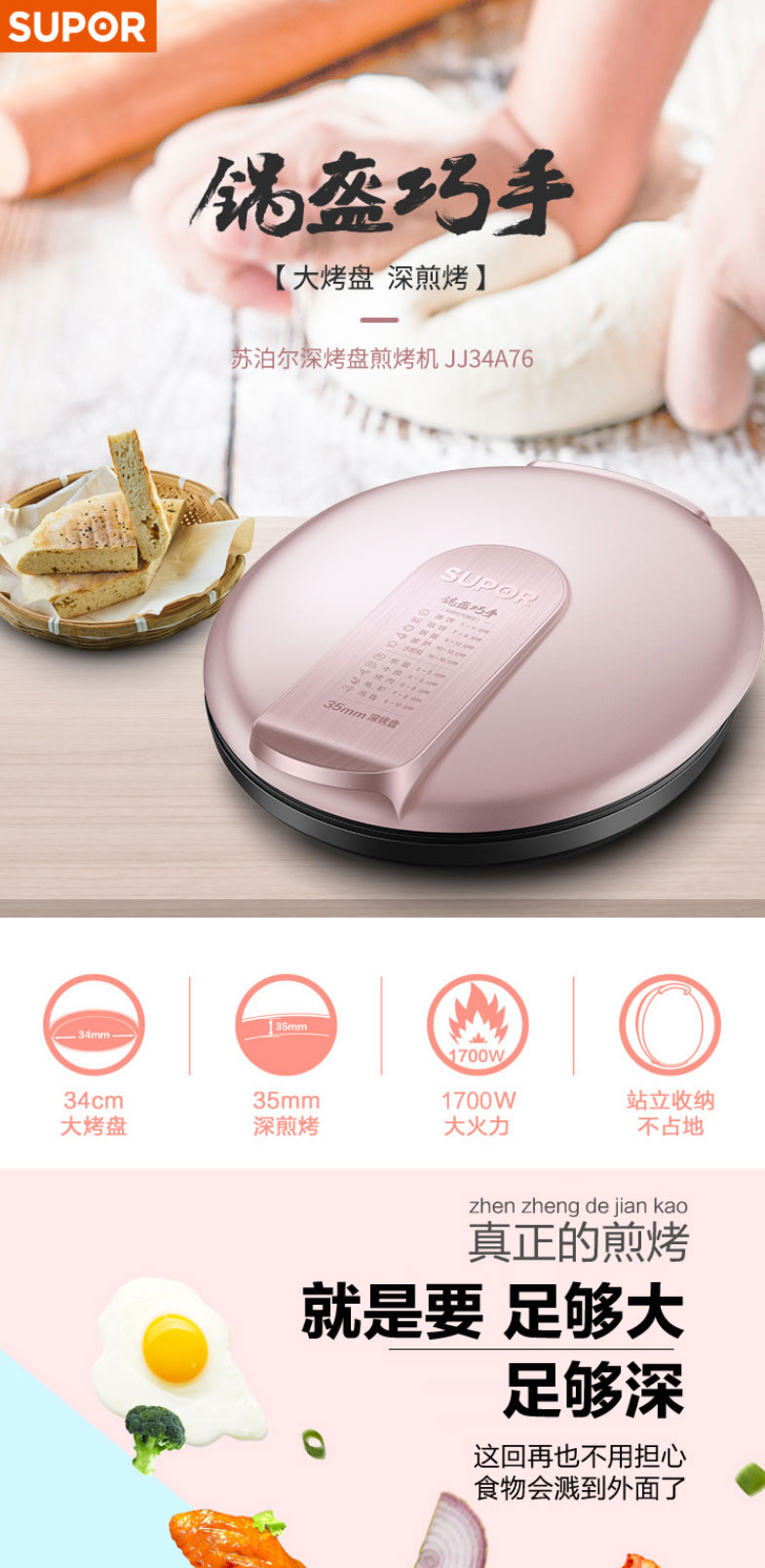 苏泊尔电饼铛家用 双面加热煎烤机烙饼锅煎饼铛34A76