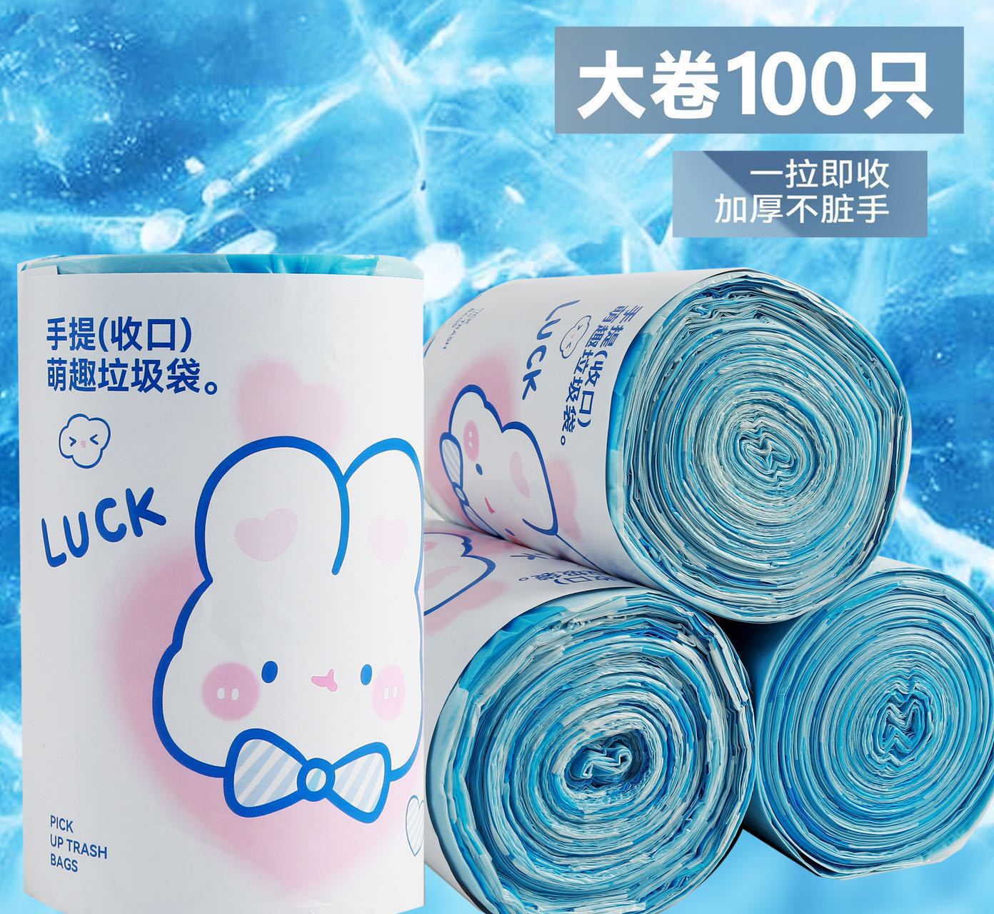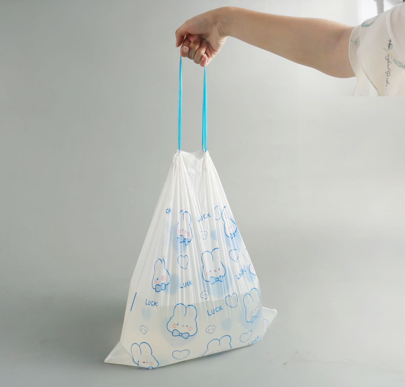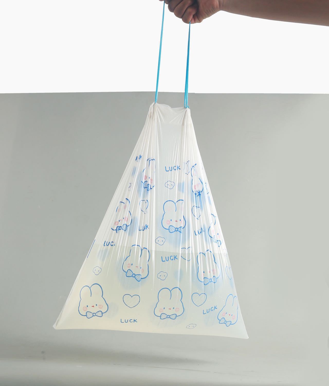蓝心兔印花加厚手提垃圾袋 卡通家用厨房卫生间一次性抽绳垃圾袋