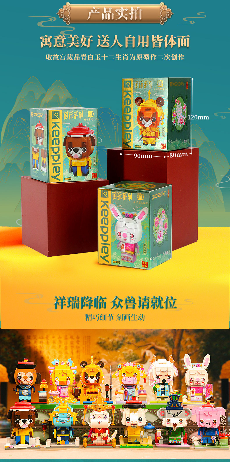 Keeppley国玩系列十二生肖动物拼装积木故宫联名儿童玩具创意摆件