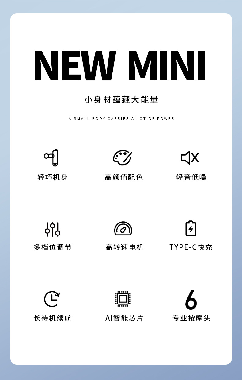 【智能迷你筋膜枪!送6个按摩头!】给自己!给爸妈做个身体SPA,迷你筋膜枪,按摩震动器,肌肉缓解酸痛,6档变频调节,激活全身力量,随心频率,舒适按摩;轻松享受放松乐趣!父亲节母亲节优选
