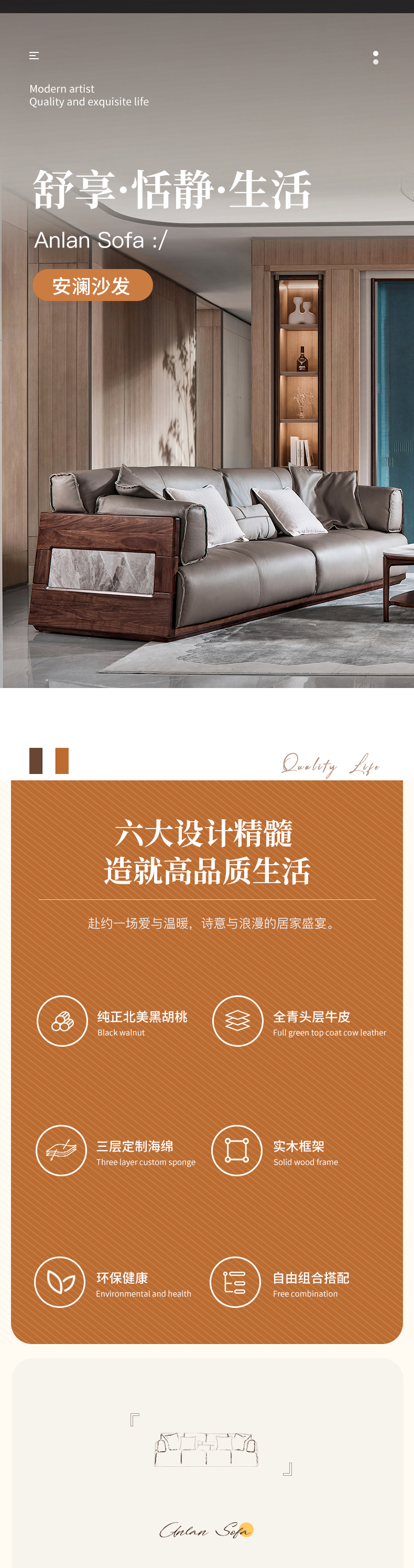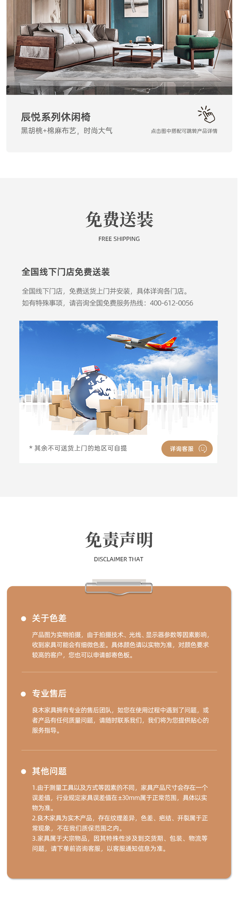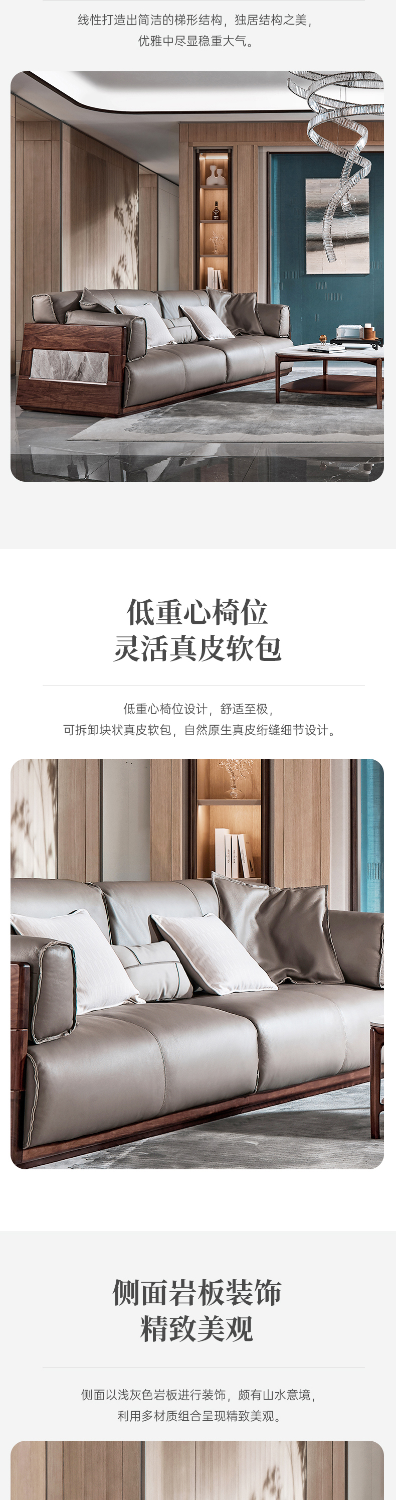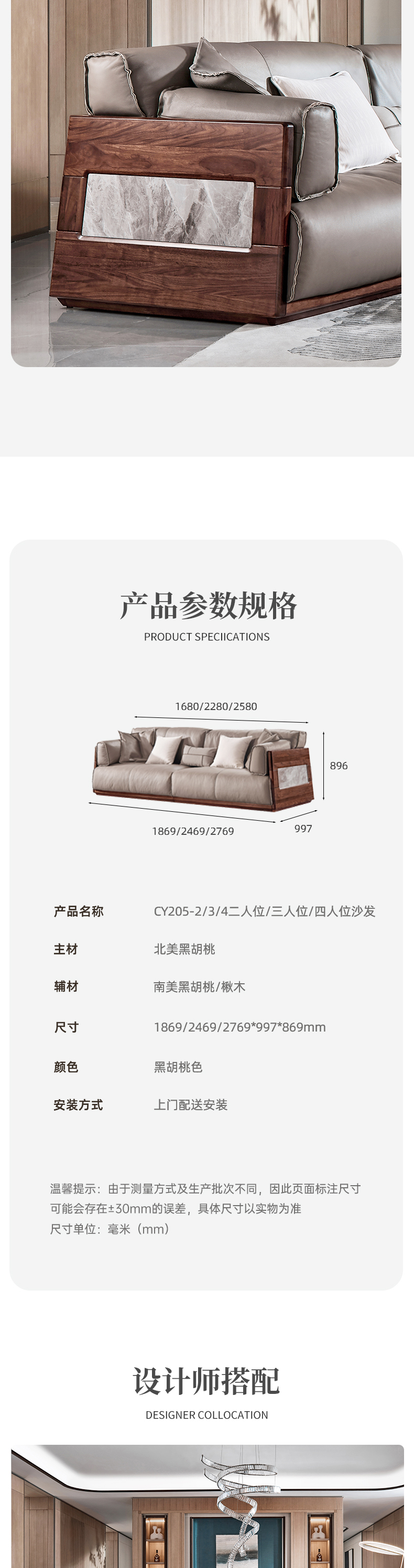 【现代风-CY205沙发】现代风/客厅/北美黑胡桃/实木&真皮 2+3+4沙发