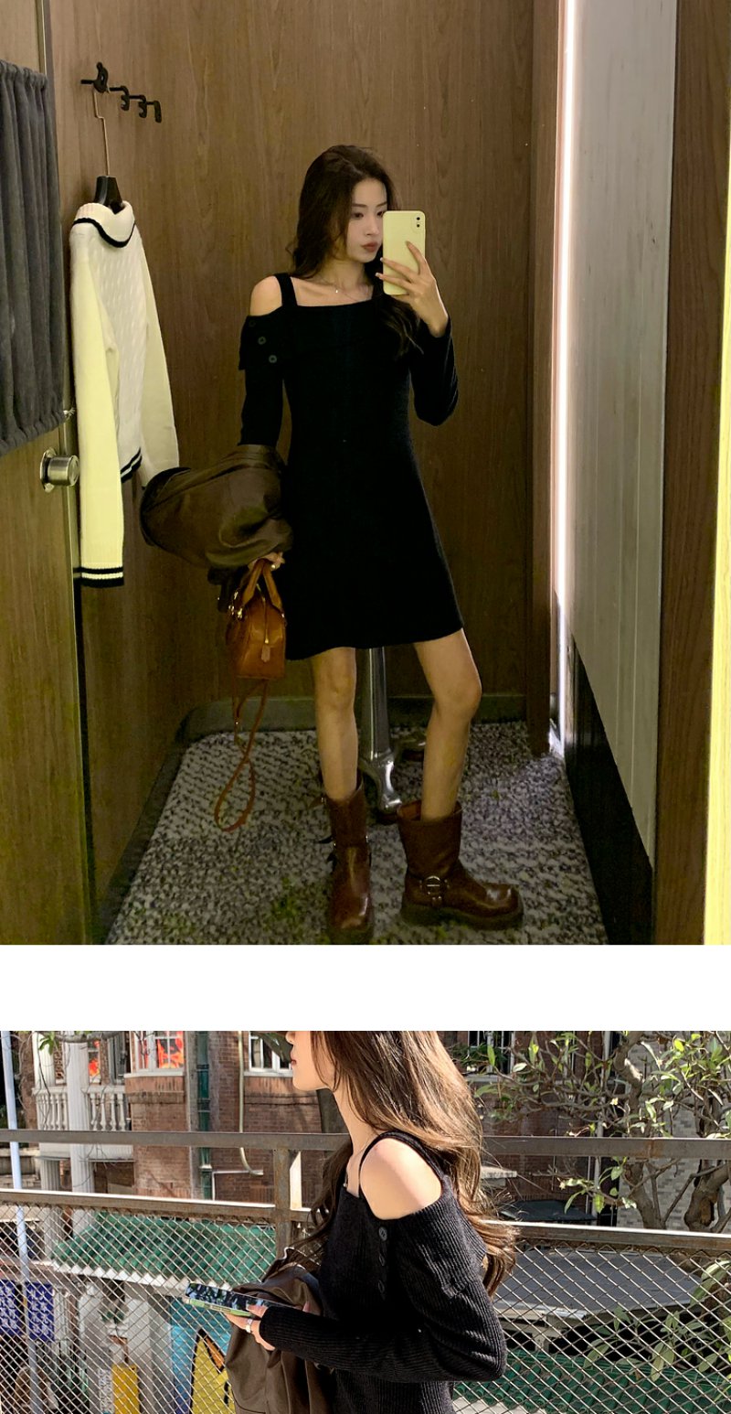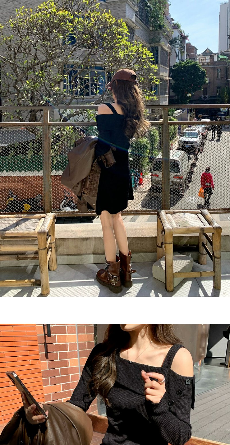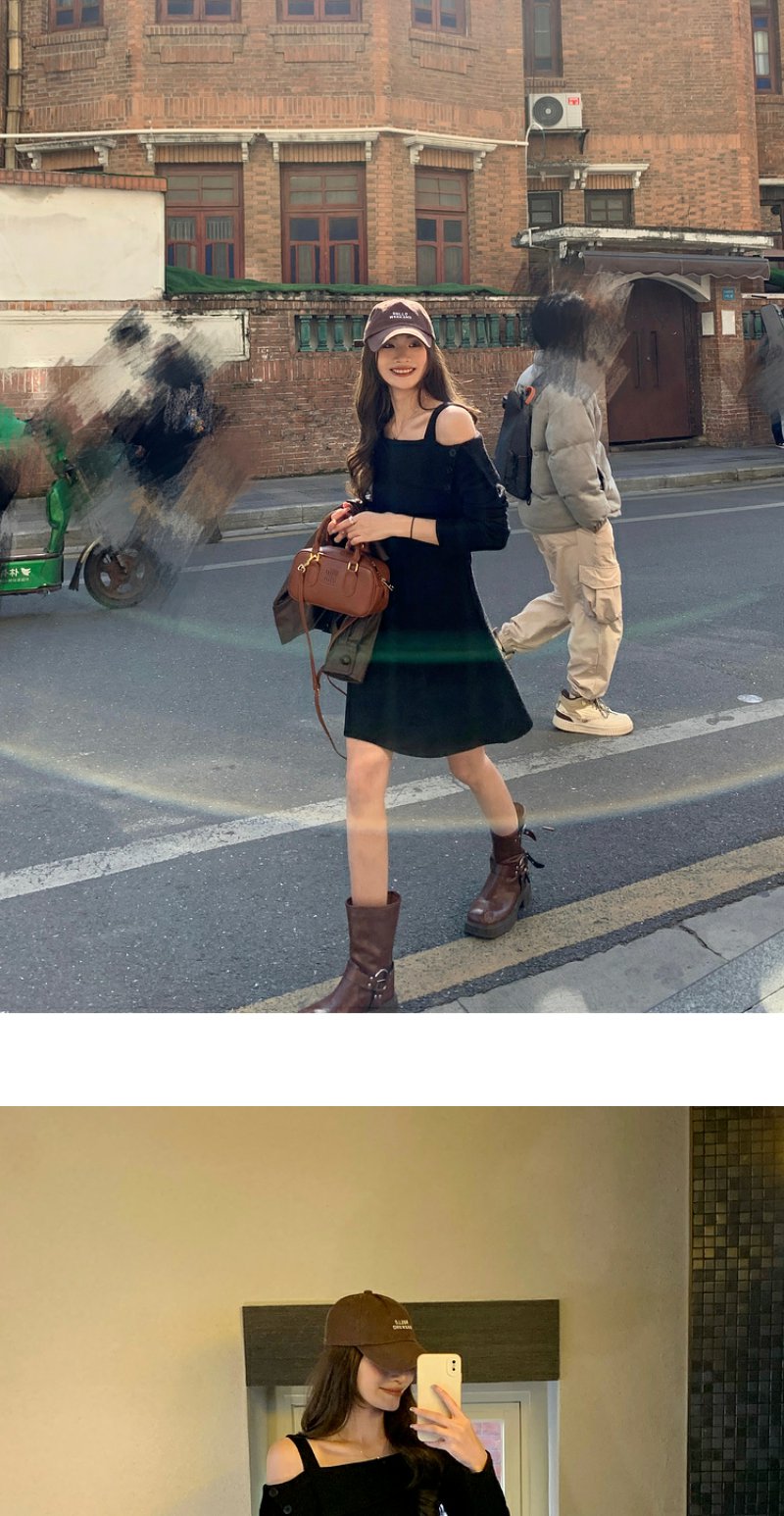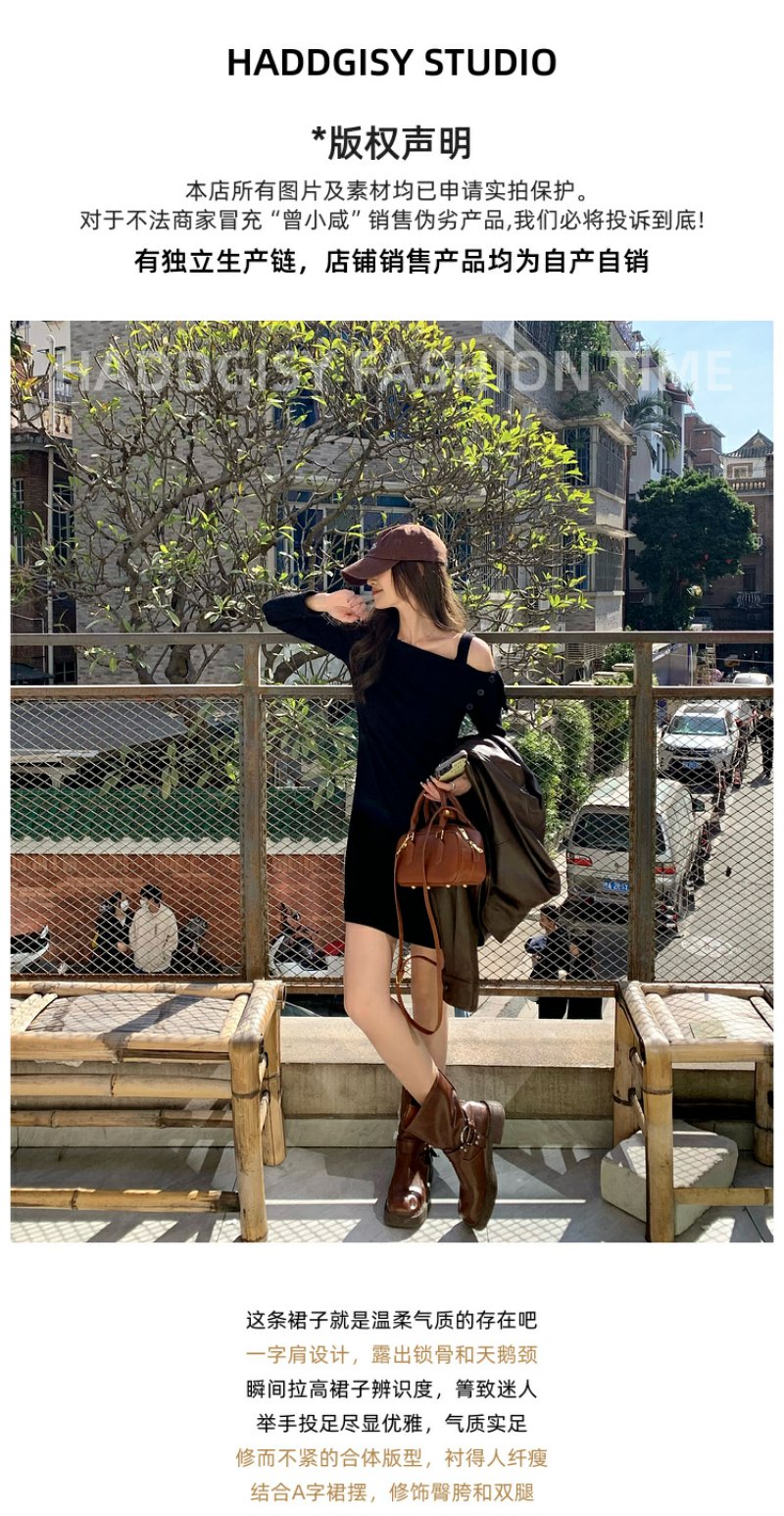 <曾小咸推荐>【酷感辣妹】黑色一字肩连衣裙