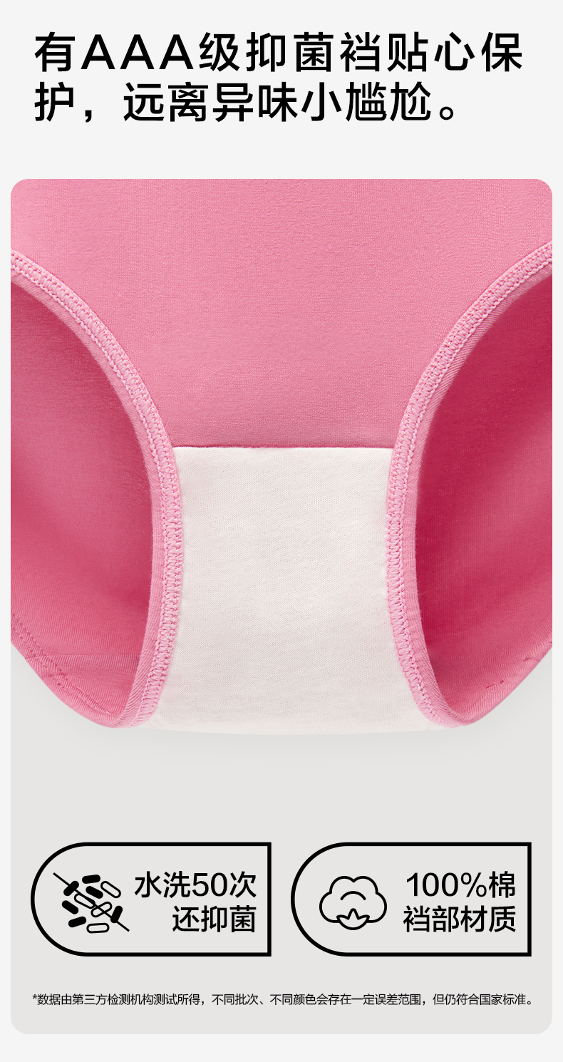 【新品上新】有棵树10A级抗菌纯棉全棉裆无痕中高腰运动健身女士内裤3条装-S047C