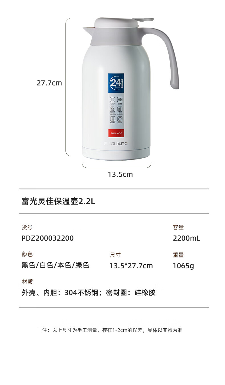 富光保温壶2.2L大容量304不锈钢保温瓶家用暖壶按压式热水壶开水瓶 100012927612