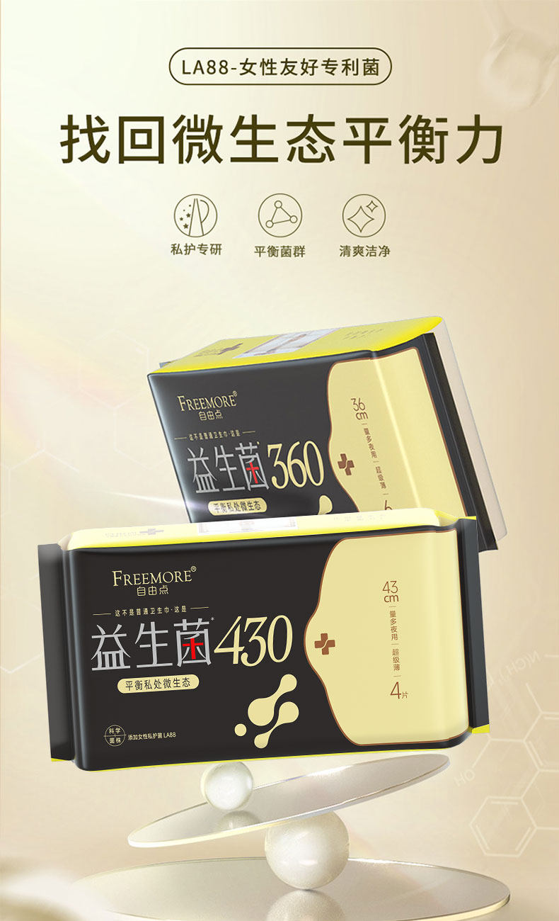 自由点益生菌6片夜用卫生巾360mm