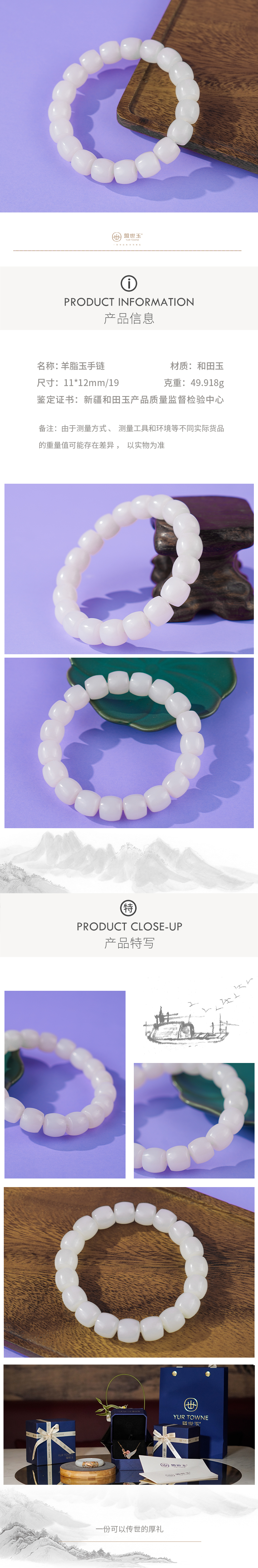 新疆国玉盟世玉羊脂玉手链【带证书·顺丰物流】