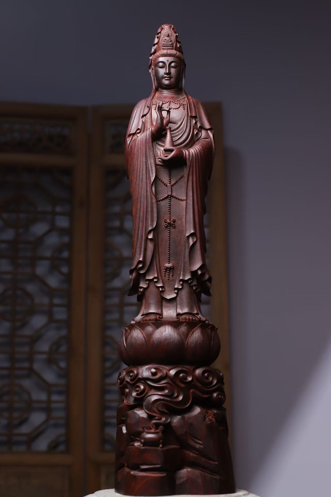 印度小叶紫檀 高油密鸡血红老料 实心料 南海观音菩萨 护佑平安