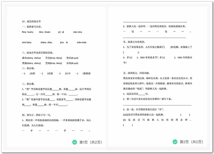 同步练习里有一课一练,连练习册都可以省了。比如《难忘的泼水节》这课,同步练习包括生词、读音、量词、生字的偏旁部首、造句、阅读理解等等,题目都紧紧围绕这课的内容展开。