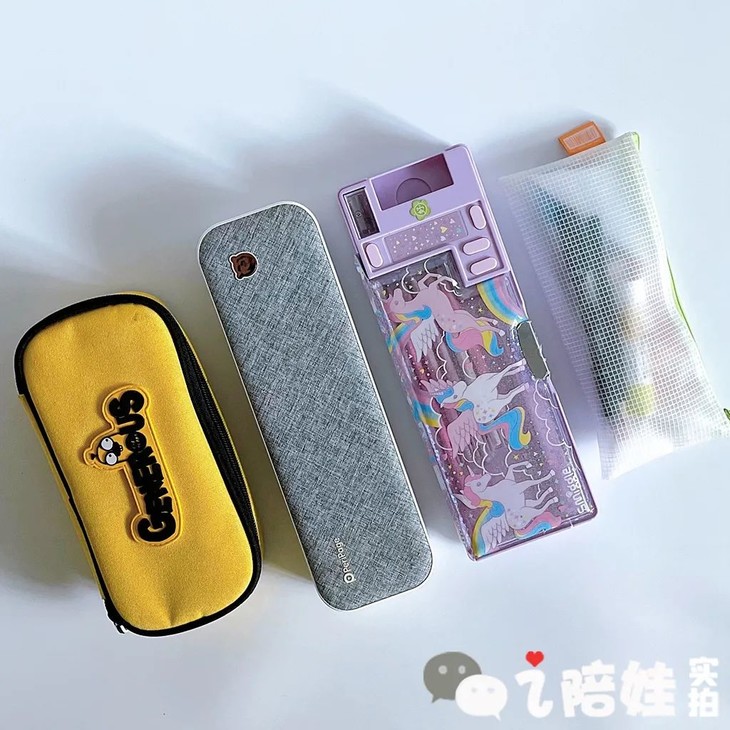 我把芊芊的铅笔盒和笔袋跟它放在一起,你就能感受到它有多小巧了。