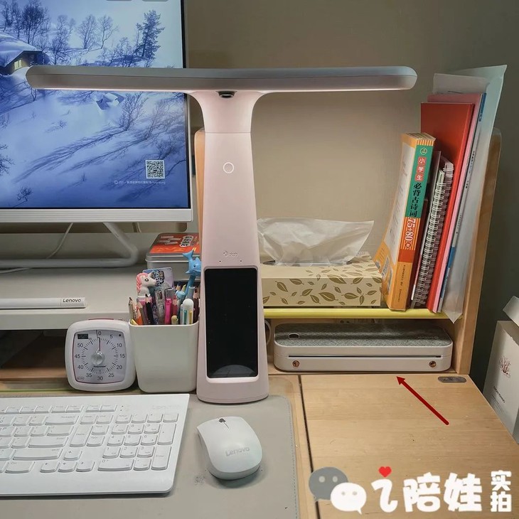 我闺蜜说这简直有个旮旯就能放下,说着往学习桌书架下边一塞就进去了,台灯后边还有点富裕。