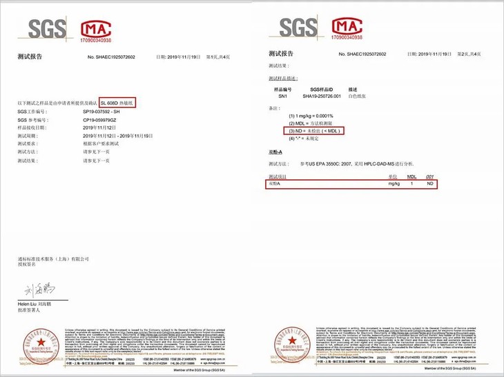 热敏纸的成分也很安全,通过了相对更严苛的第三方检测 ,这些都是要求对人体无害环保的,不光是双酚A,含有任何有害成分都不可能通过这些认证的。