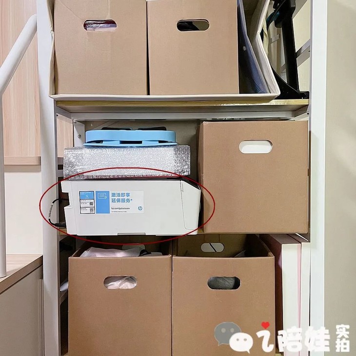 这台墨仓打印机是我闺蜜家的,她家因为没合适地方放,平时都放在置物架上,每次打印再搬到桌上接电源,基本打印一次就得折腾5分钟,她跟我吐槽过好几回。