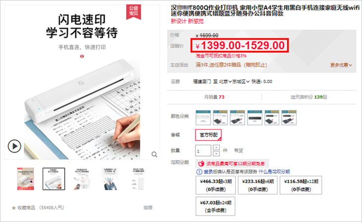 A4迷你打印机,青春版推荐价是699元,送6卷A4速干卷纸(3年留影),之前不送纸还要799元,所以这次活动还挺划算的。