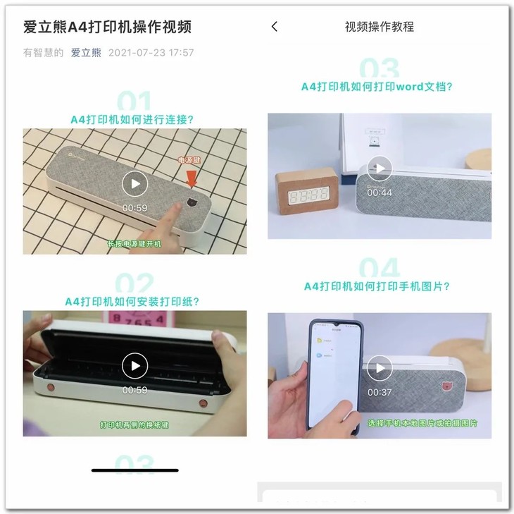 爱立熊打印机的APP很容易上手,我基本上都没看说明书,首页的使用攻略点进去,如何连接、打印,APP里都有视频指南,每个不到1分钟,说的简洁又清楚。