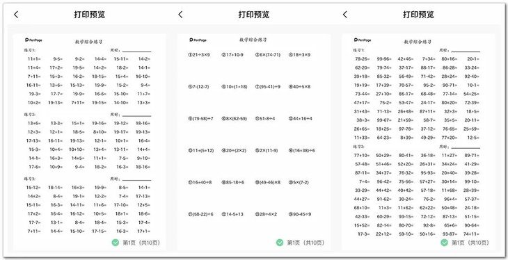 小学数学版块里,最基础的口算练习,包括加减乘除、横式竖式、进位退位,各种形式都包括在内了。