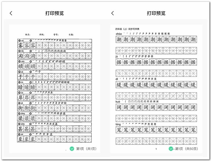 字帖里的每课一练,有拼音、描红、笔顺,版式跟花钱买的字帖差不多。
