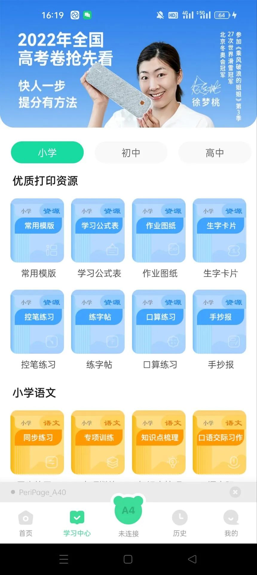 下边都是打印机里自带的各种资源,比如同步小初高-语数英各科复习试卷、知识梳理、拍照搜题(含解析)、字帖、口算、手抄报等等(后边细说),我之前看的汉*这些功能,都需要后期付费才行。