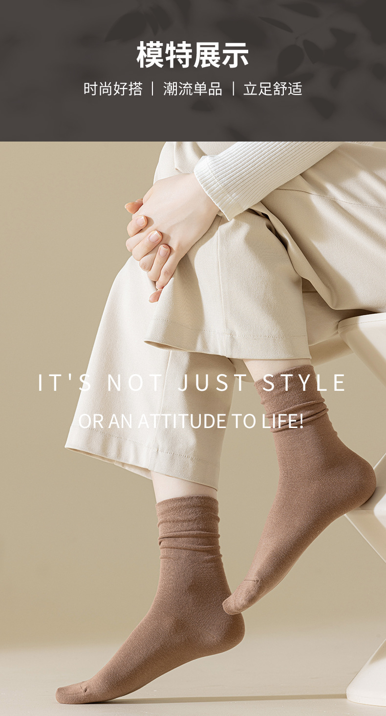 29元抢10双 袜子女中筒ins潮 百搭月子袜纯色秋冬复古风堆堆袜白色袜子长袜子