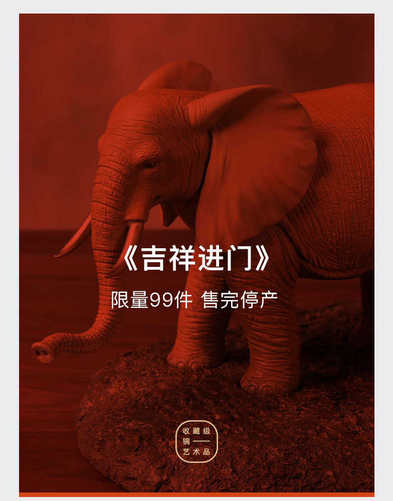 太铜 铜摆件《吉祥进门》大象桌面客厅玄关家居装饰工艺品摆件