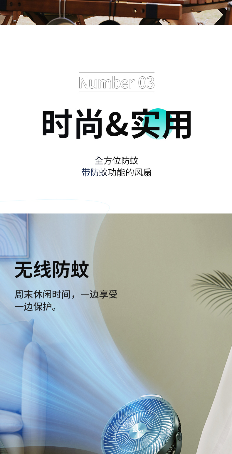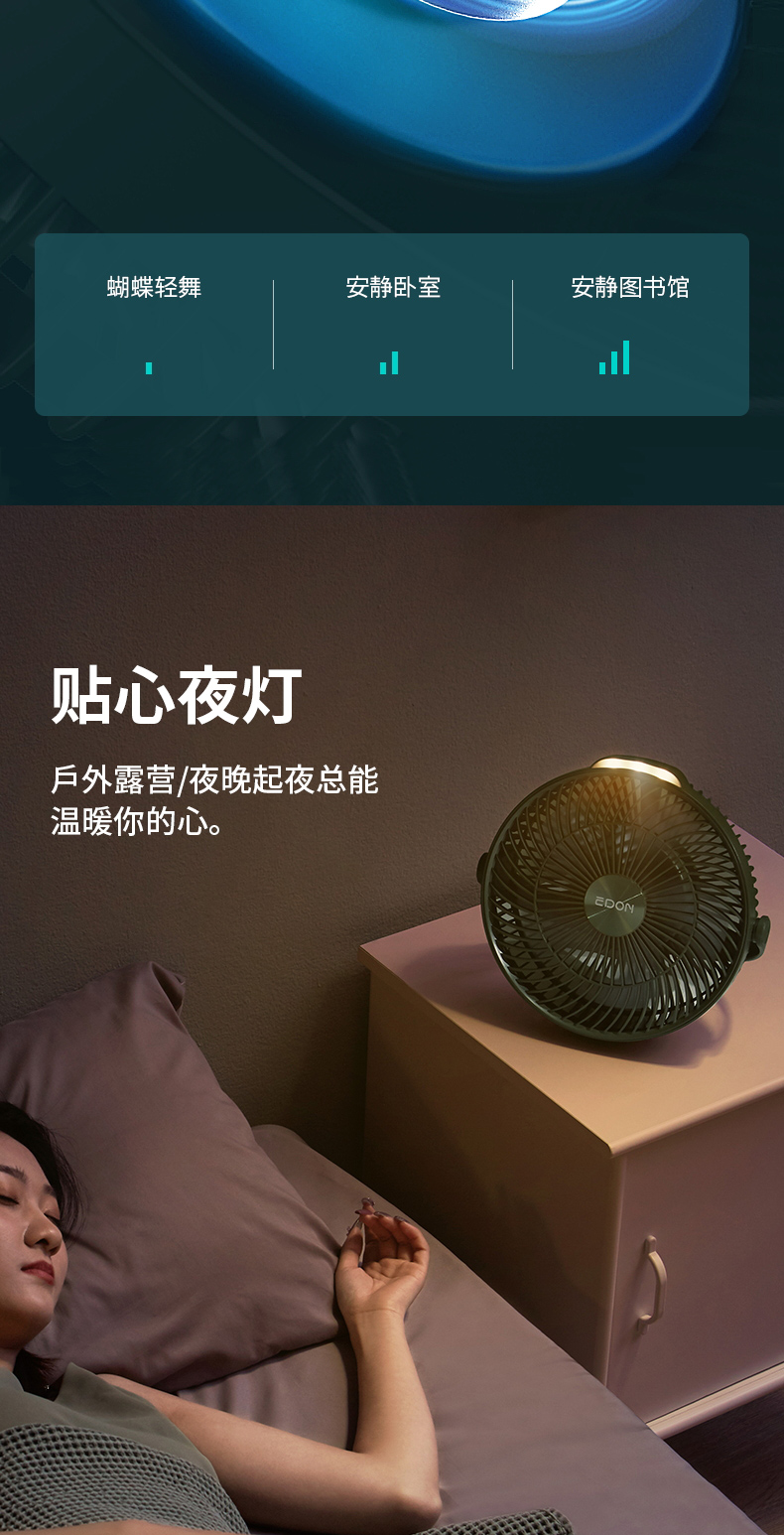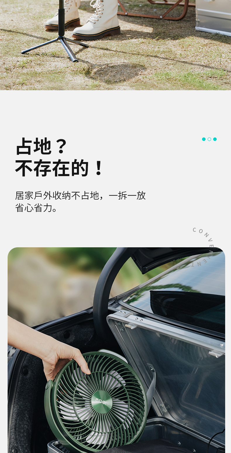 爱登 E708户外露营充电便携式电风扇 家用立台式落地两用 (常规版无驱蚊功能)[福利品]