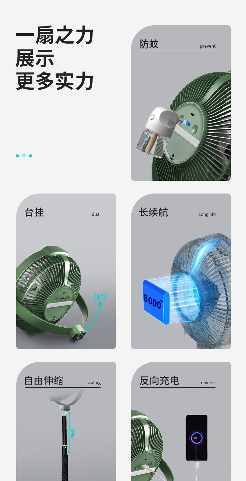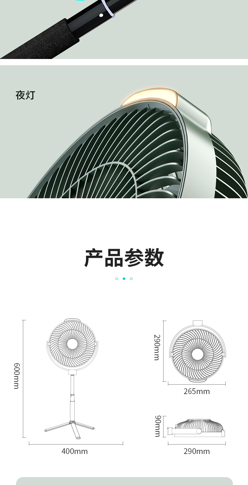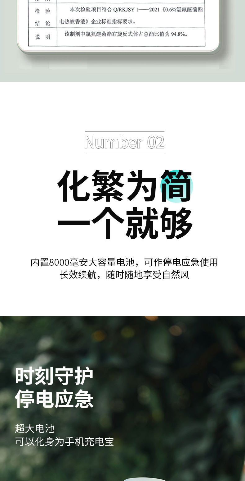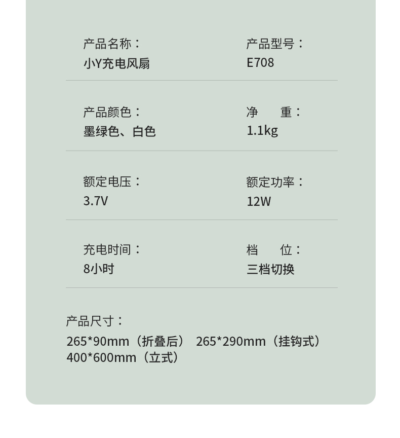 爱登 E708户外露营充电便携式电风扇 家用立台式落地两用 (常规版无驱蚊功能)[福利品]