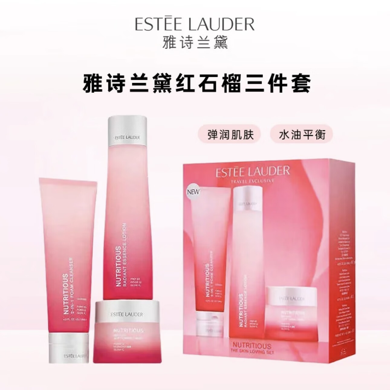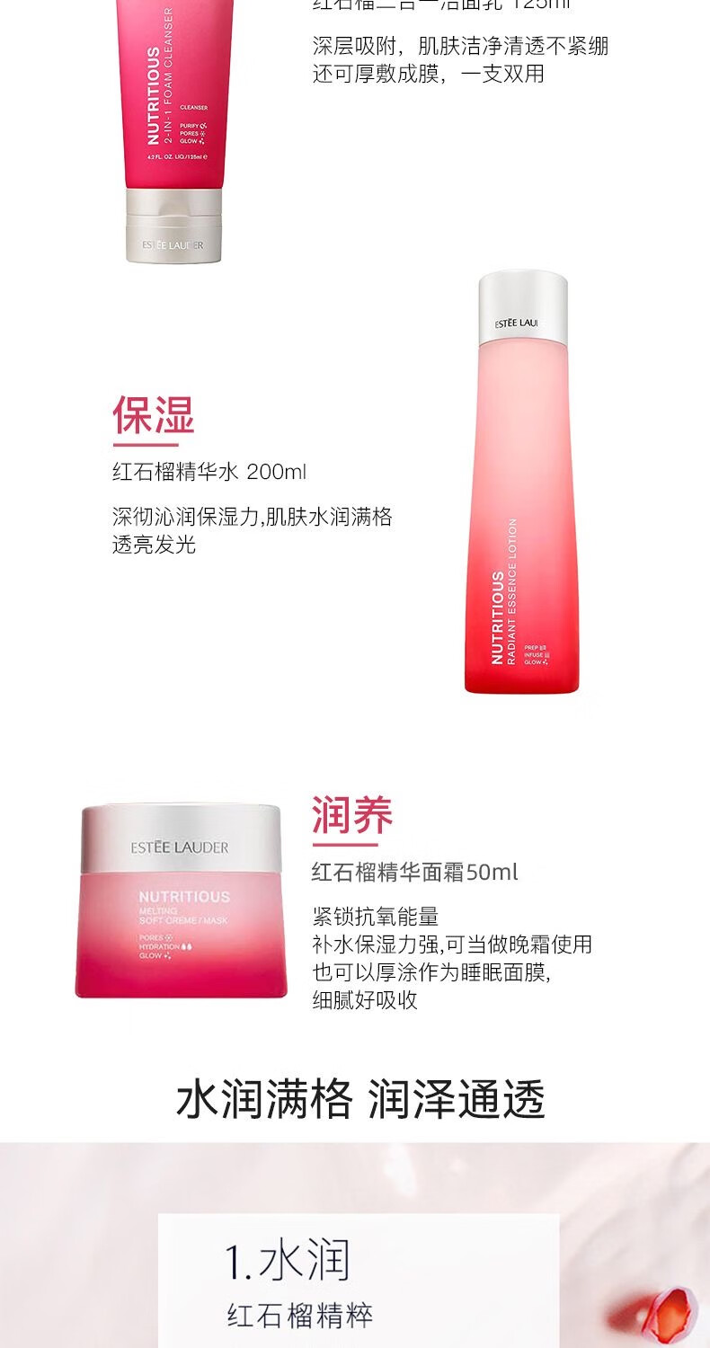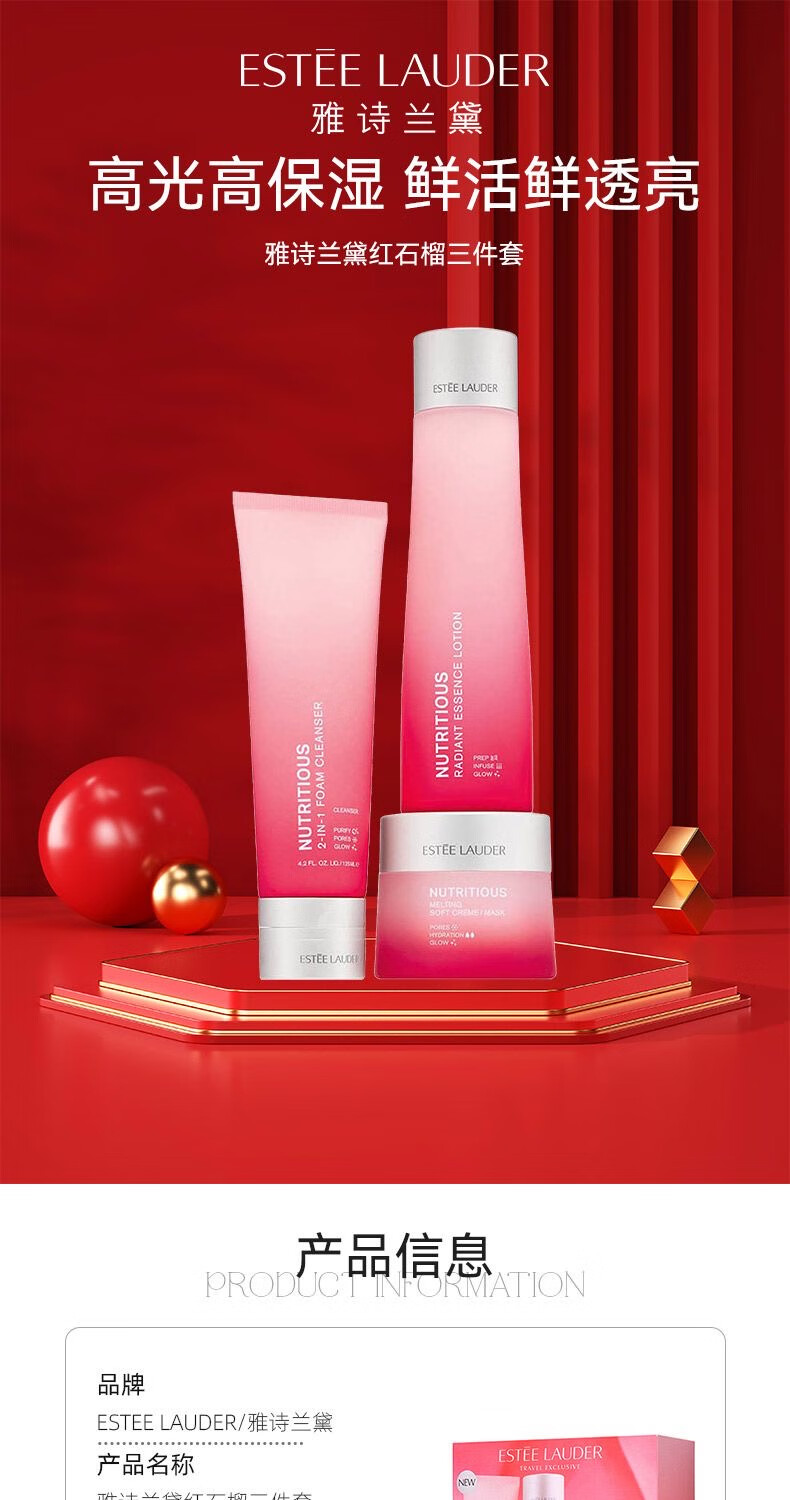 雅诗兰黛 红石榴护肤三件套(洁面乳125ml+能量水200ml+面霜50ml)