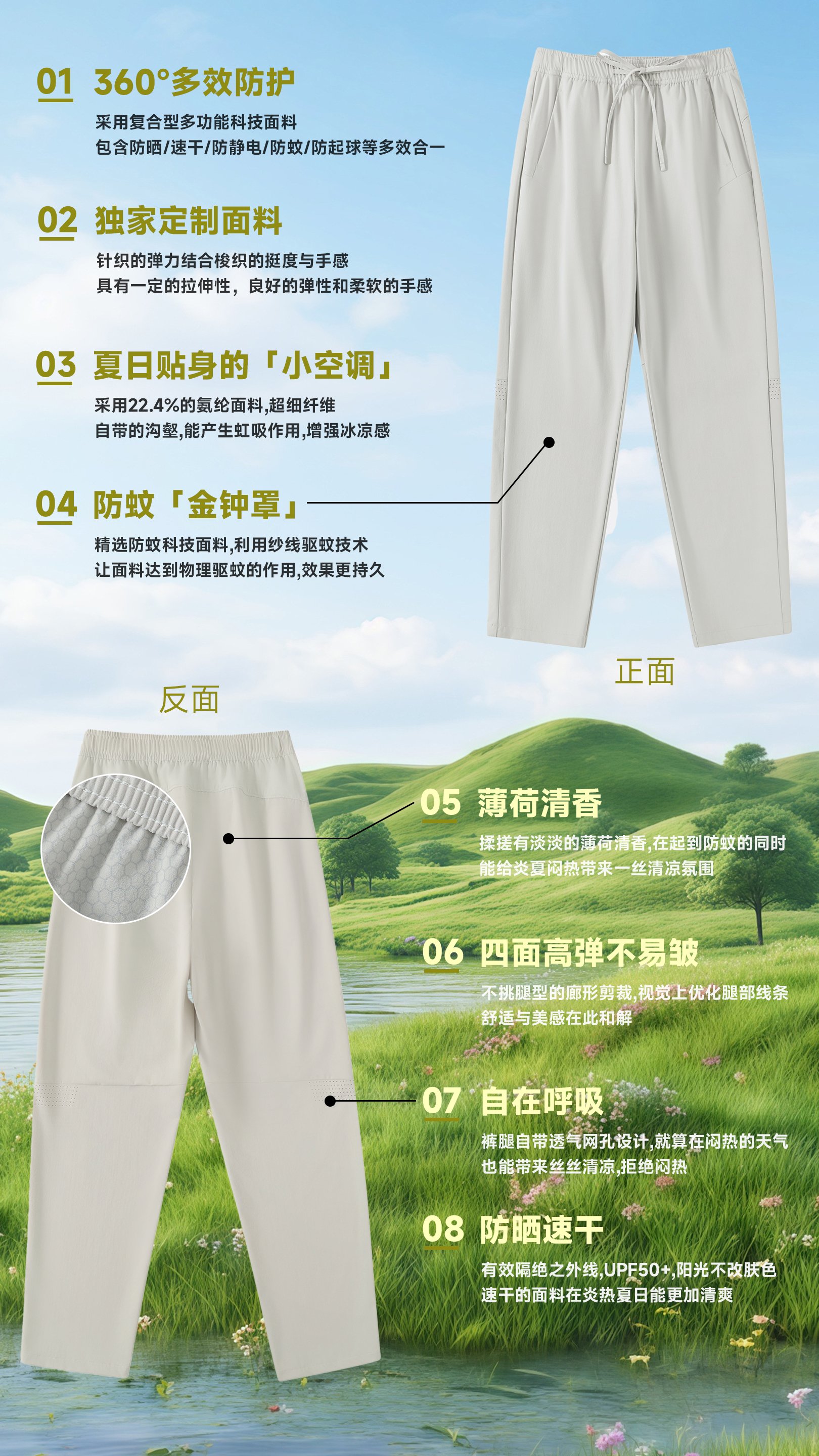 【LA迪桑皱爆冰裤】首条“防晒+速干+驱蚊+自降温”集一体的功能裤 — 迪桑皱爆冰裤 10A抗菌 抗皱免熨