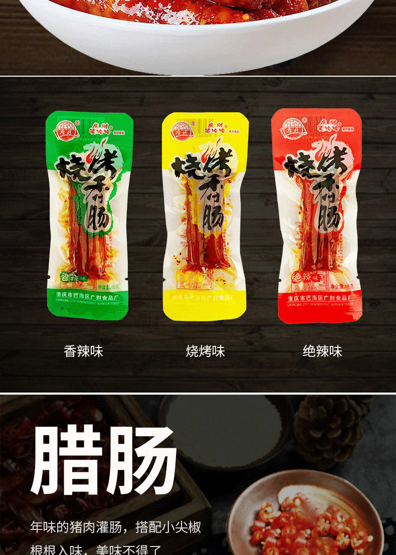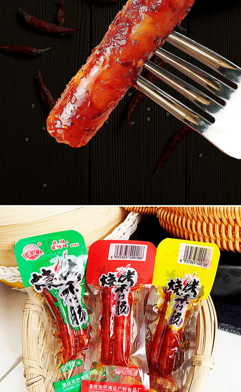 「20包装!单包两根」广财笑哈哈土家柴火香肠16g/袋即食辣爽辣小腊肠零食猪肉肠