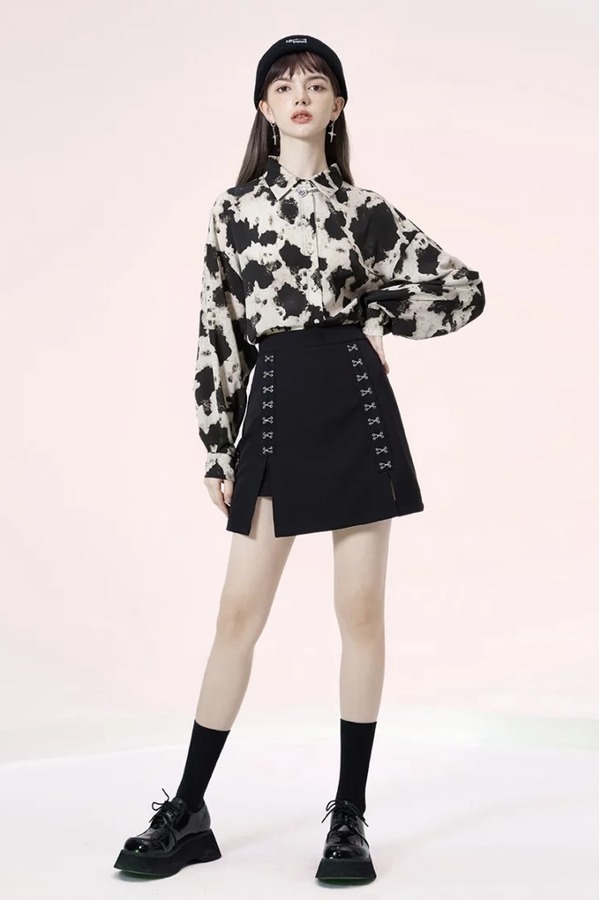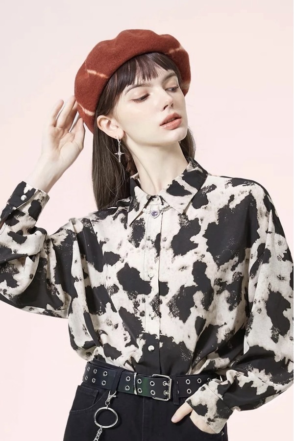 I'M ONE 垂感休闲不规则印花衬衣 17029