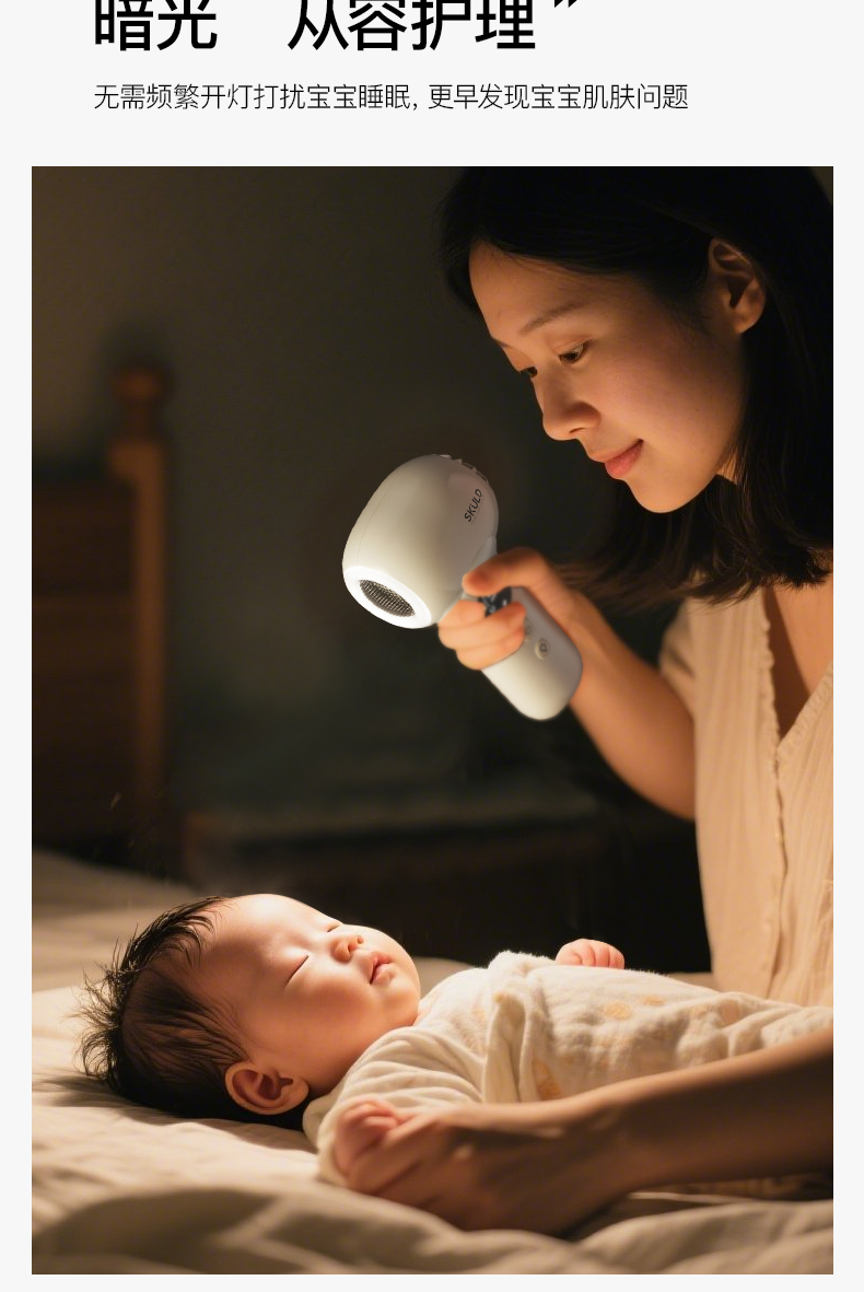 干爽PP看得见,柔光灯环能够尽早发现宝宝皮肤问题(一档灯光调节)