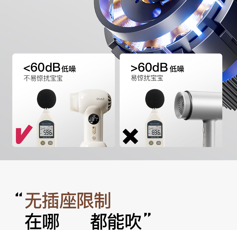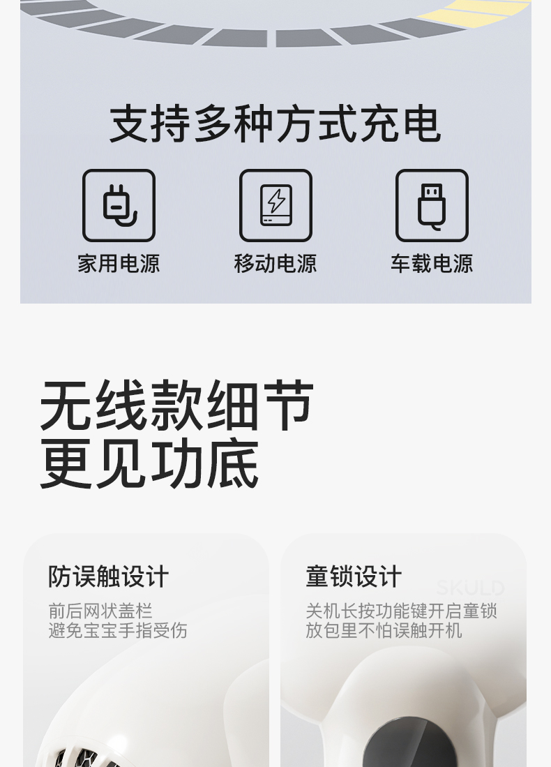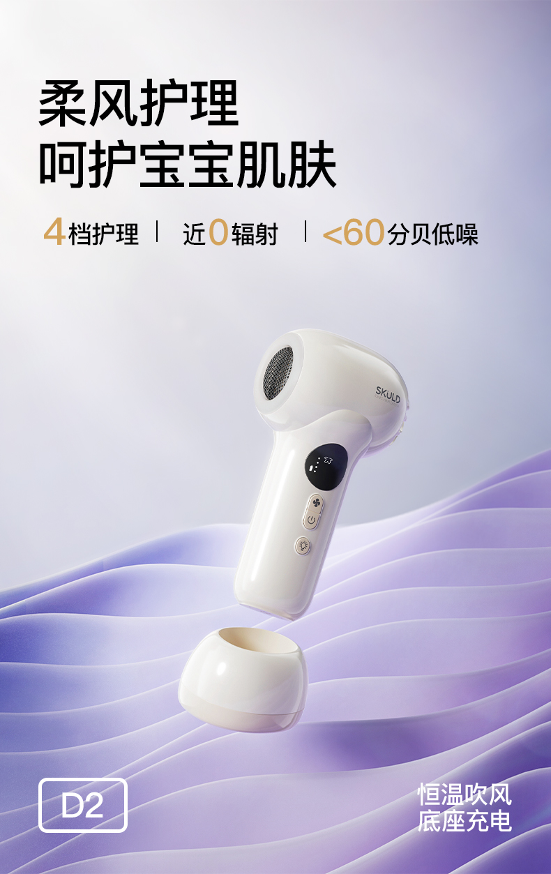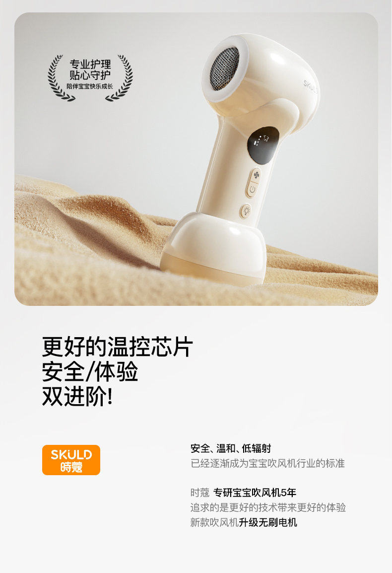 SKULD时蔻新款儿童吹风机无线吹红屁屁宝宝专用电吹风柔风低噪D2/D2plus