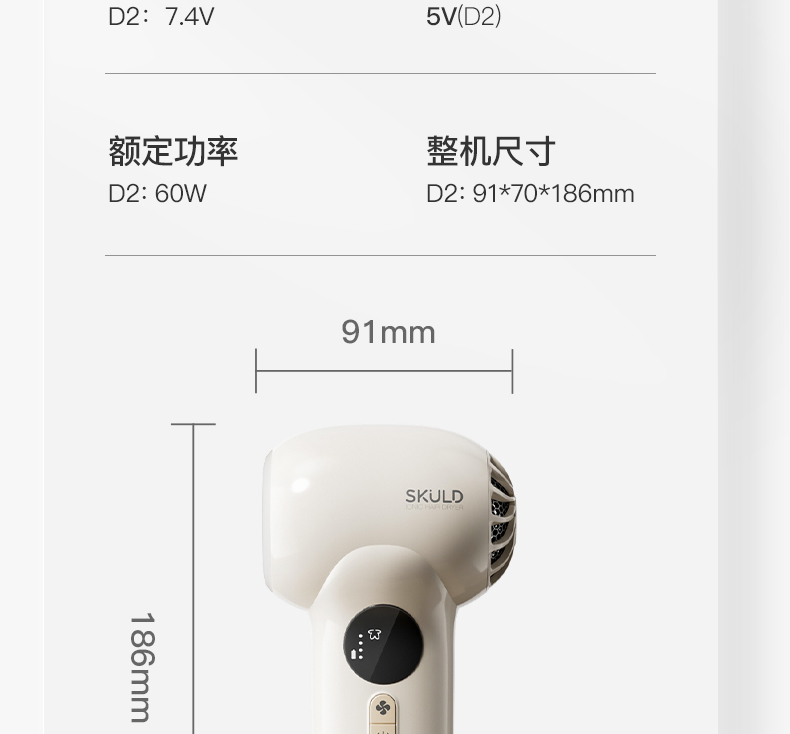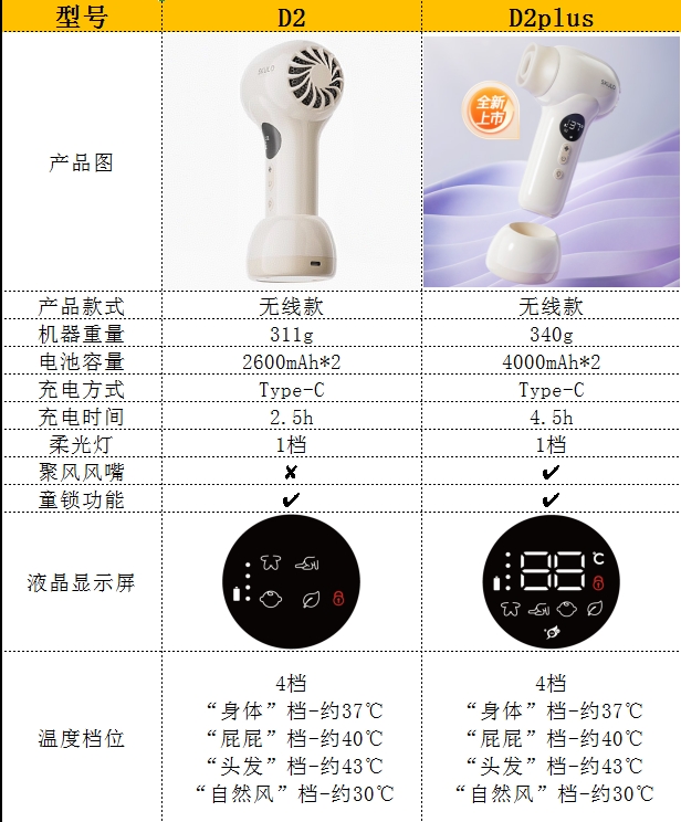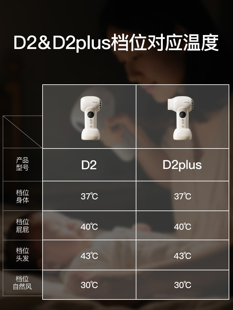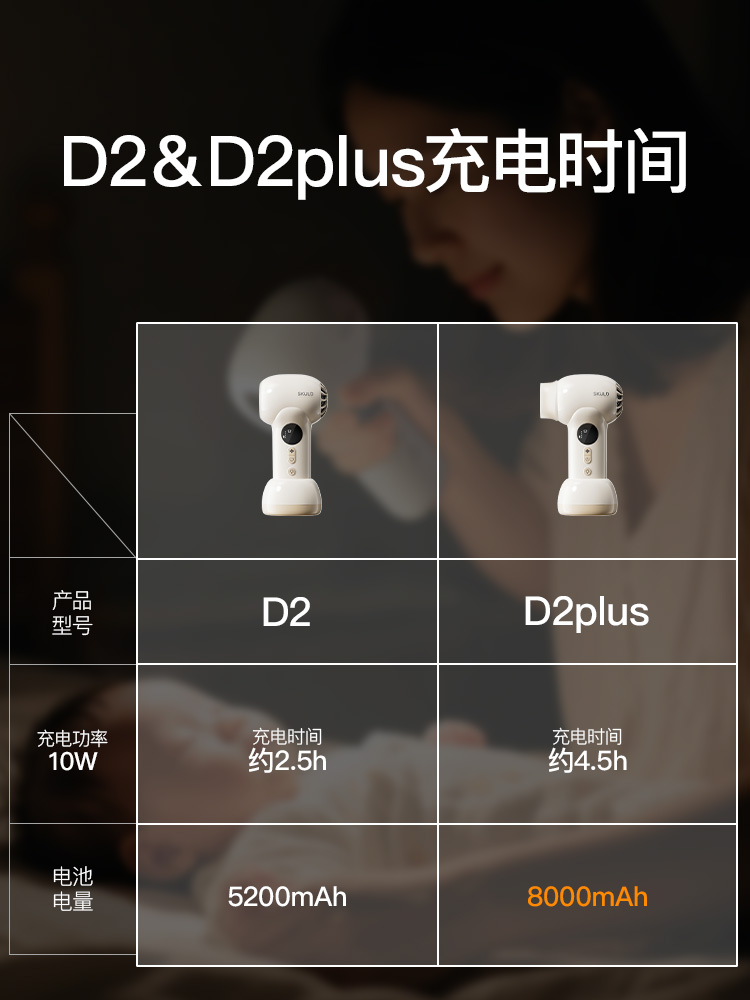 D2/D2plus 自由握持使用,温柔吹发+吹干屁屁超好用,无线设计不受限