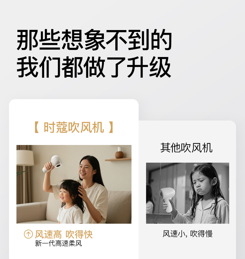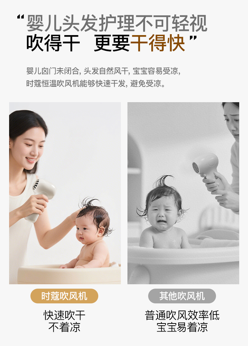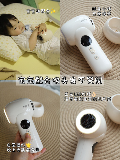 家里有个吹头困难户宝宝谁懂啊...每次吹头发都要上演一场大战,吹风机声音稍微大点风温烫点就抗拒,每次吹头发跟打仗一样,抓都抓不住!直到我发现了介个!!时蔻宝宝吹风机,轻松解决了我家娃的吹发难题~