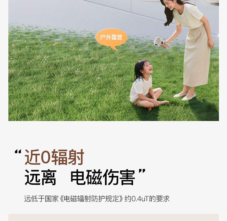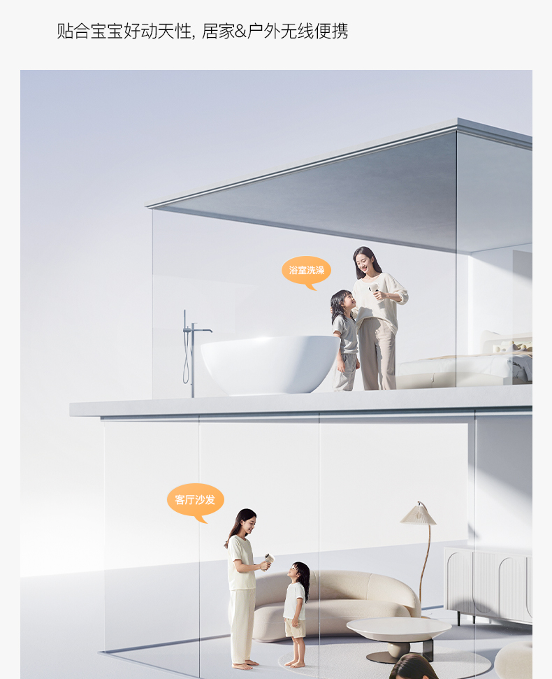 产品内置大容量电池5200mAh(2600mah 2节),充电使用避免了电源线的束缚,可以在婴儿床、推车、卫生间