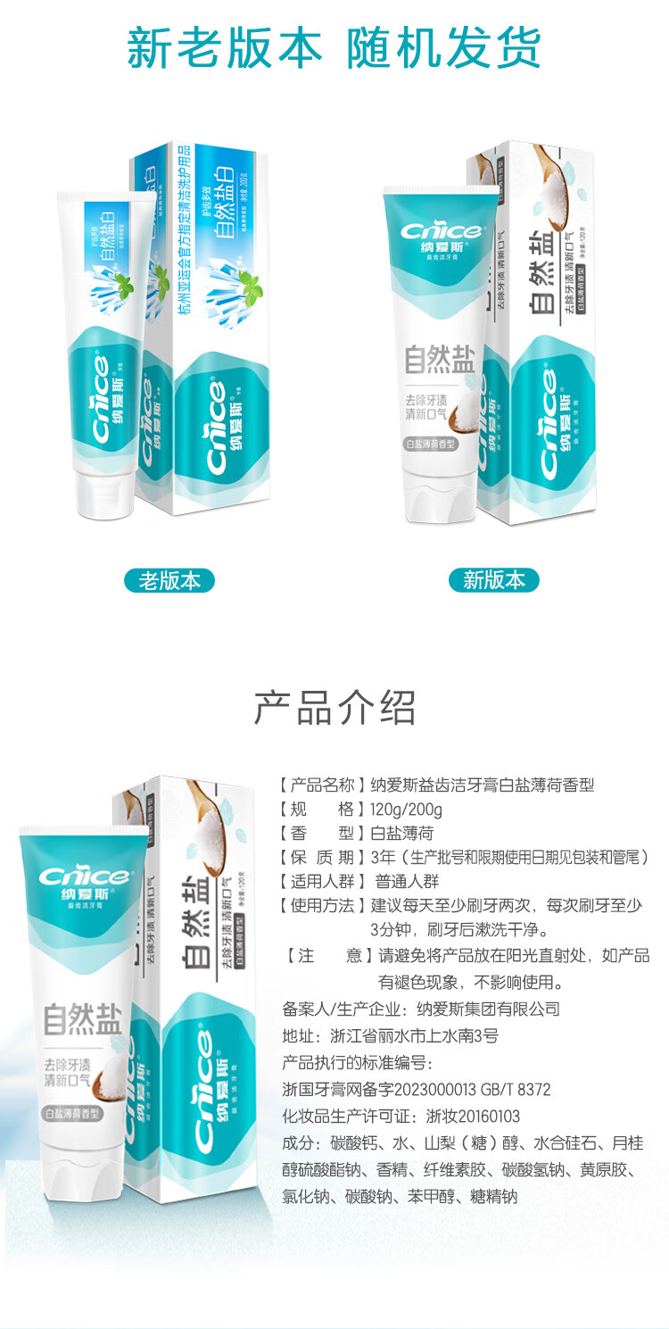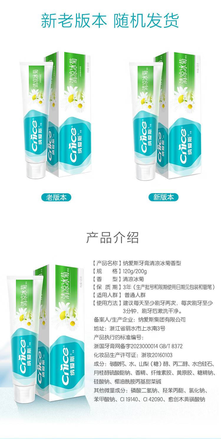 纳爱斯 牙膏鲜果+盐白+冰菊清新口气牙膏120g*3支