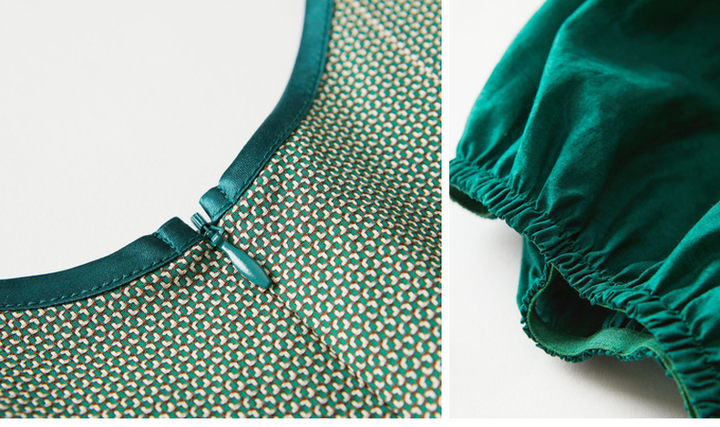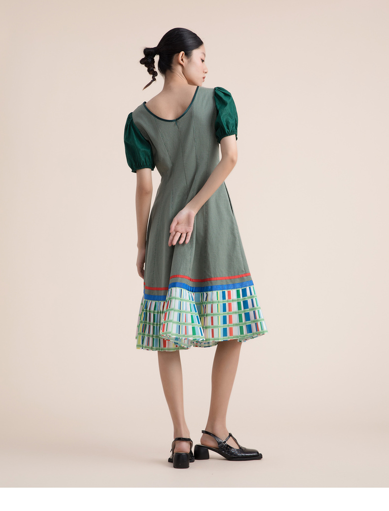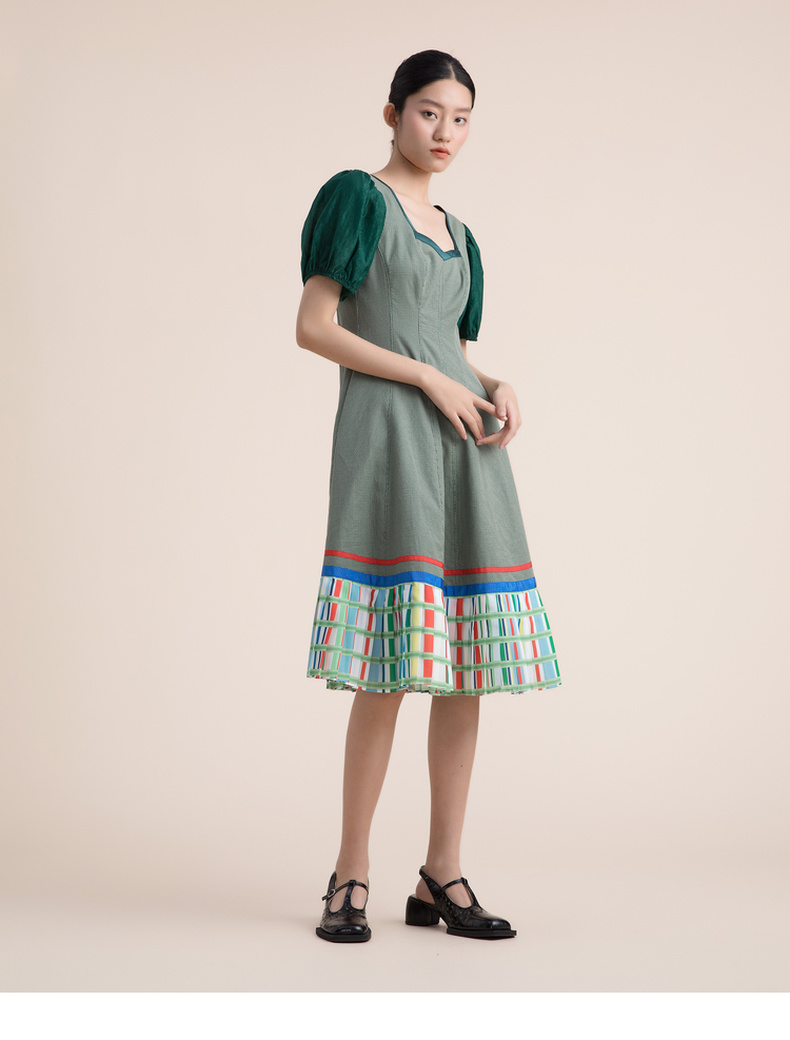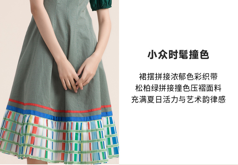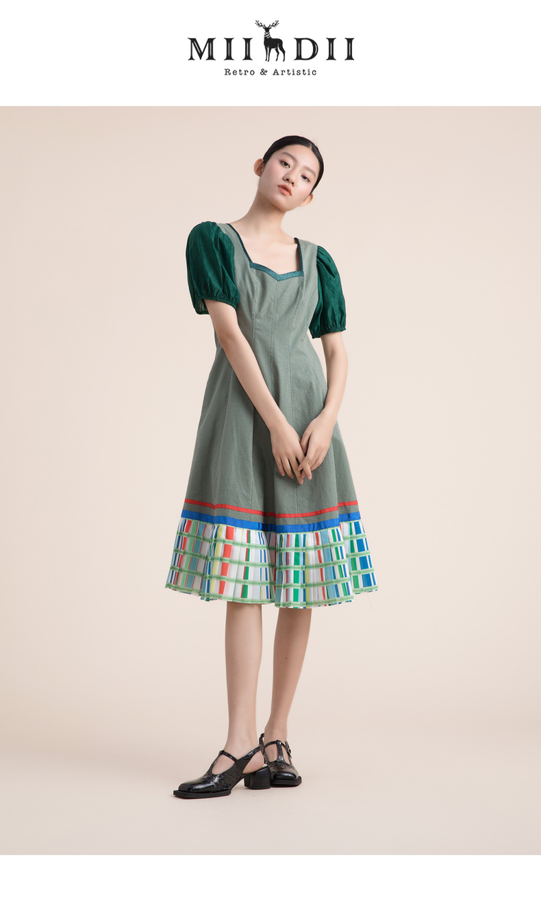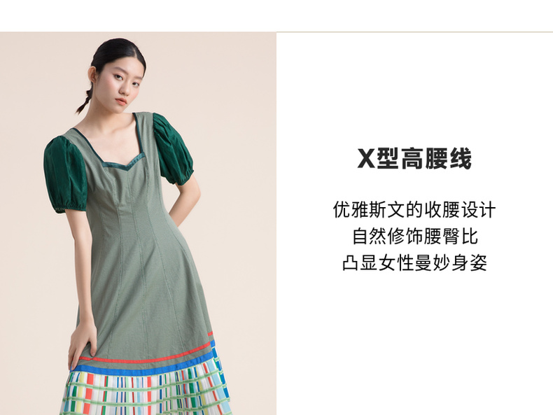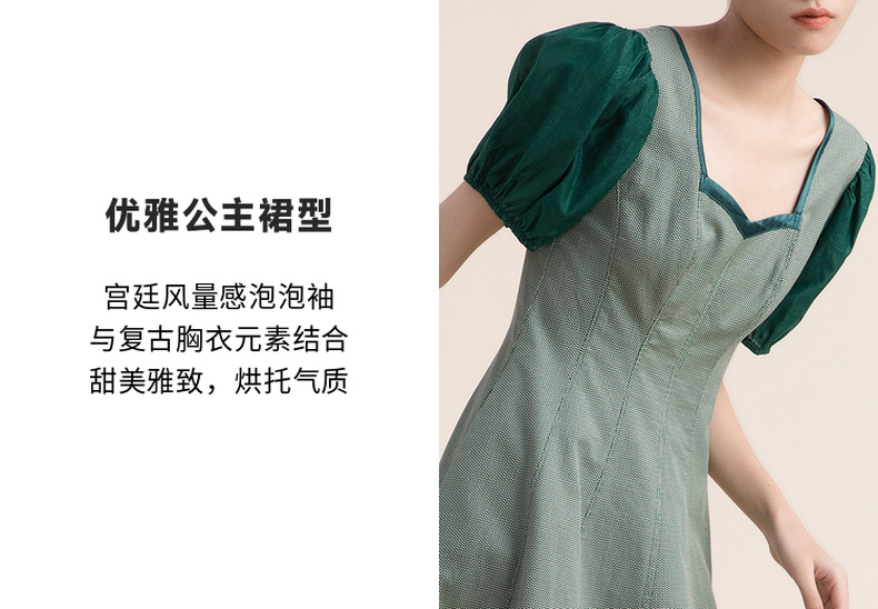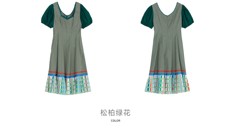 谜底短袖纯棉连衣裙2022夏款复古泡泡袖收腰显瘦中长裙222ML0607