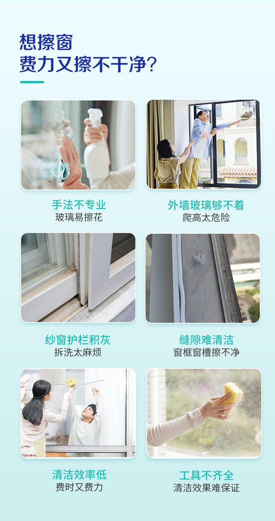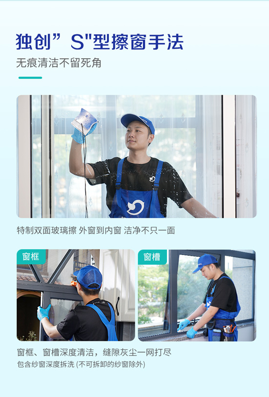 服务内容:1-2位家居服务工程师,提供全屋双面精细擦窗服务,包含