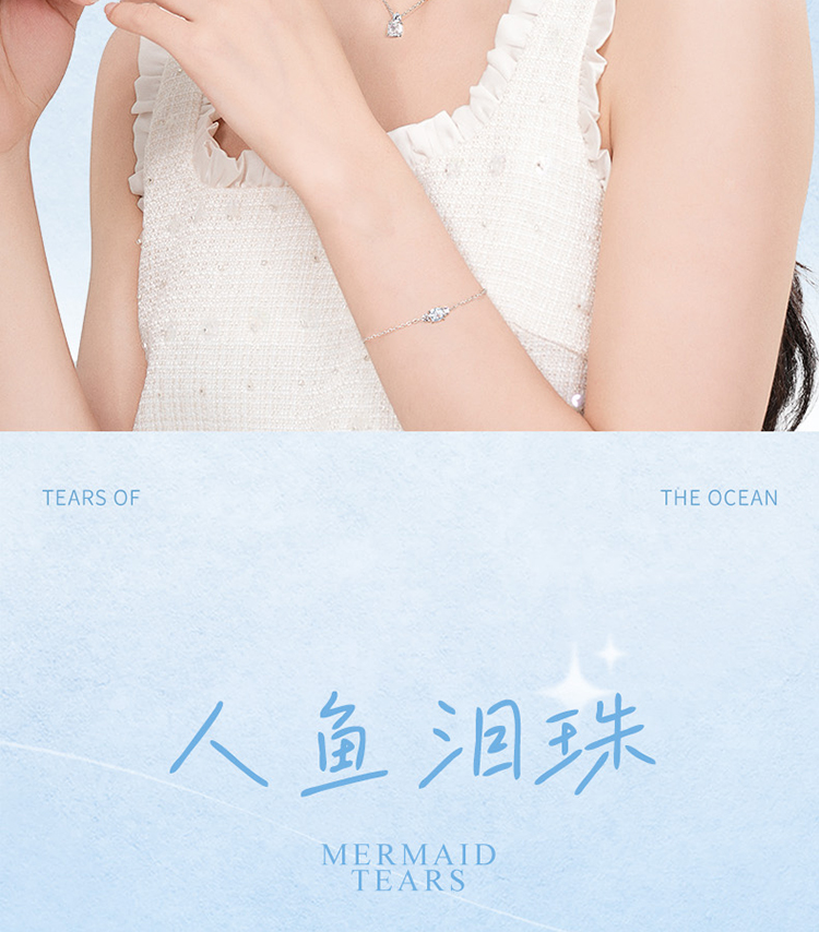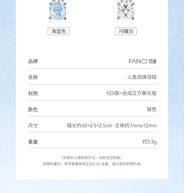 Fanci范琦 人鱼泪珠镶嵌吊坠时尚简约锁骨链925银项链女款
