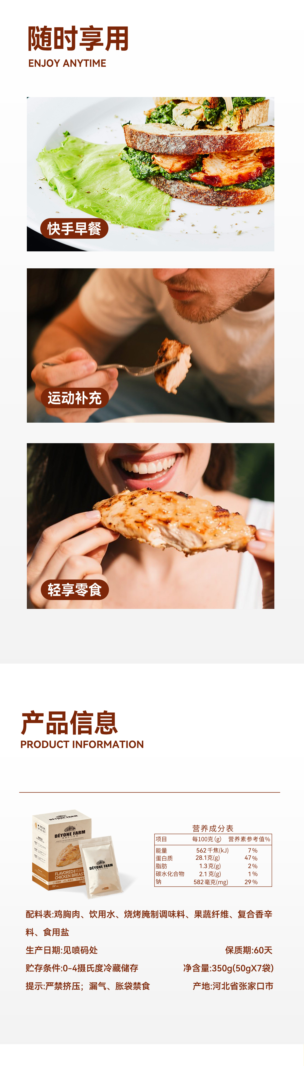 即食烧烤味鸡胸肉鲜嫩多汁丝丝入味50g*7袋
