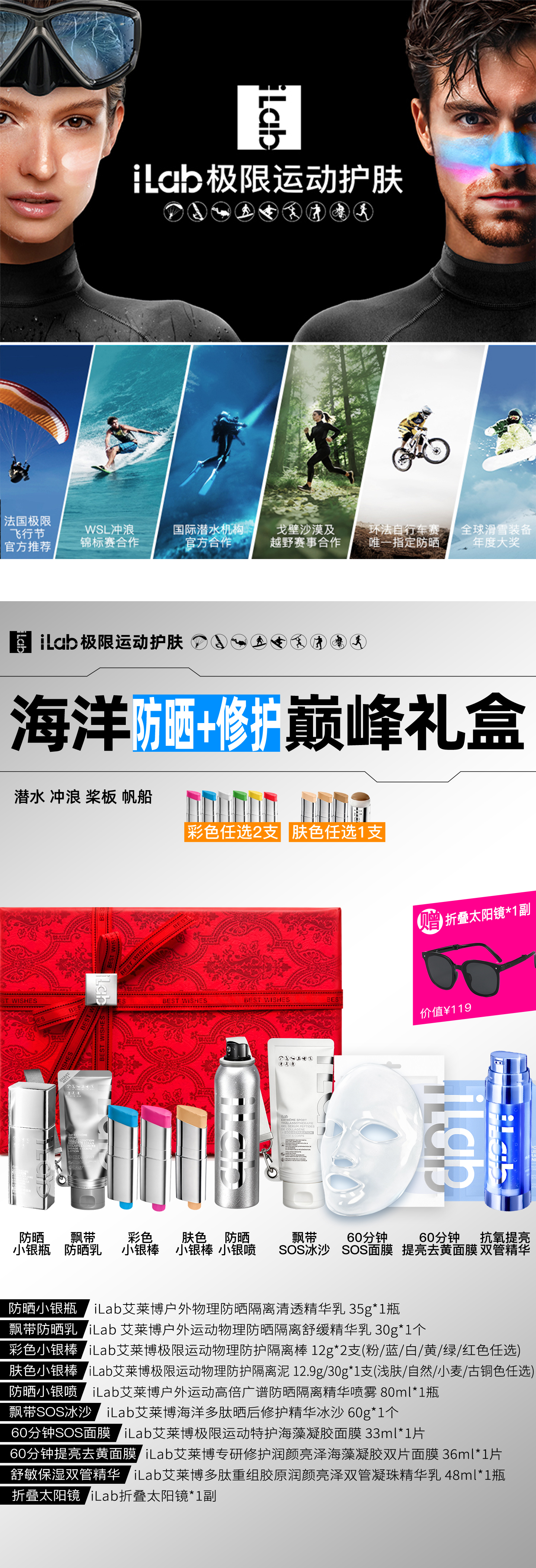iLab艾莱博海洋(防晒+修护)巅峰礼盒 (潜水冲浪桨板帆船)