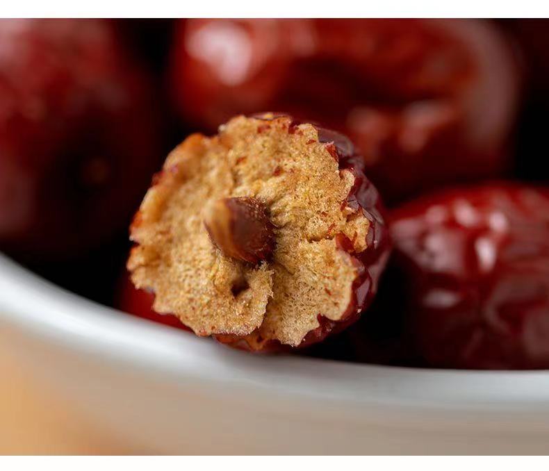 肉质紧密,枣香浓郁。既可以与枸杞、银耳共炖制成糖水,也可即食,当做休闲零食