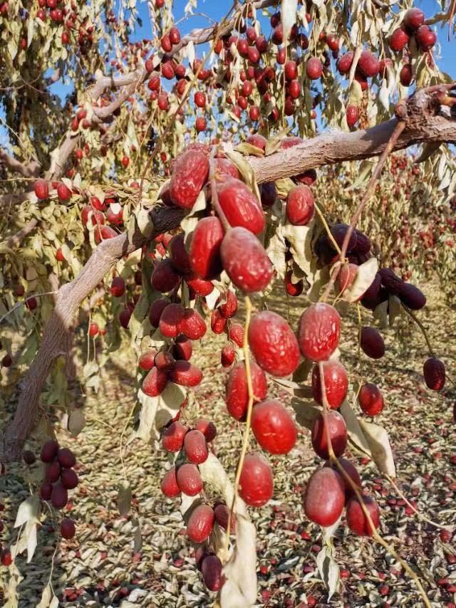 收获时,只要轻轻摇晃果树,枣子就像落叶一般簌簌落地